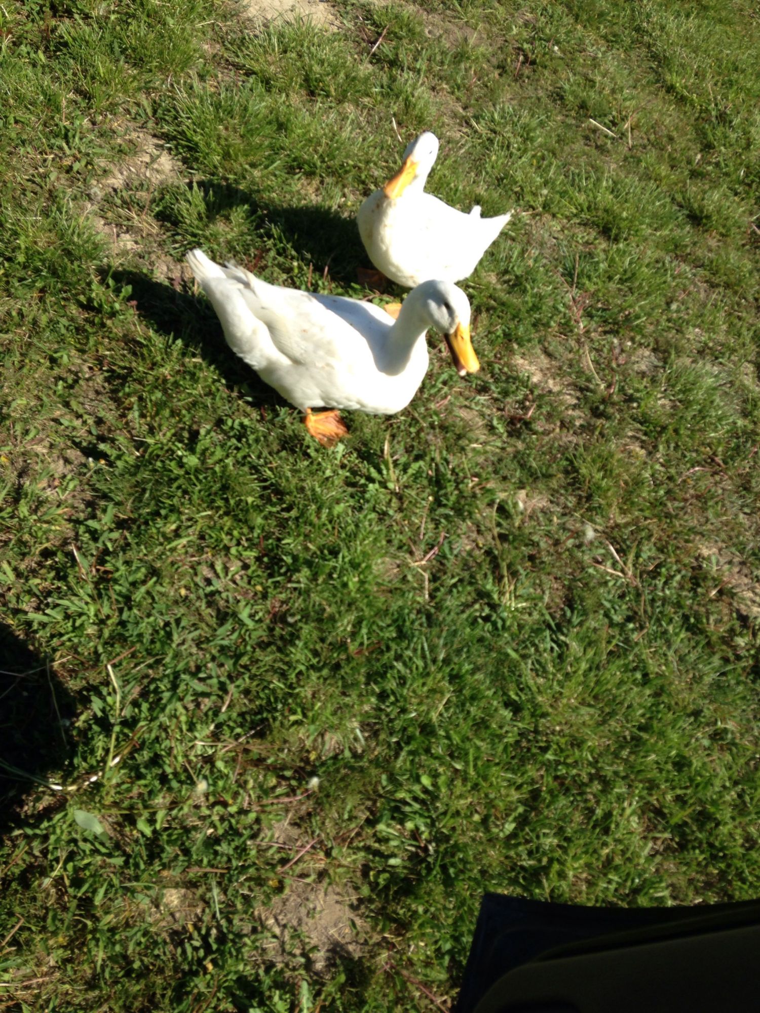 I rescued two ducks that are three months old for now I let them roam during the day and at night I put them in my chickens run out. I have a pond and I'd like them to go in it but I've tried and tried by putting them just in the edge and trying to coax them out further but they won't. Any idea? It's annoying that they bathe in their water dish all the time.