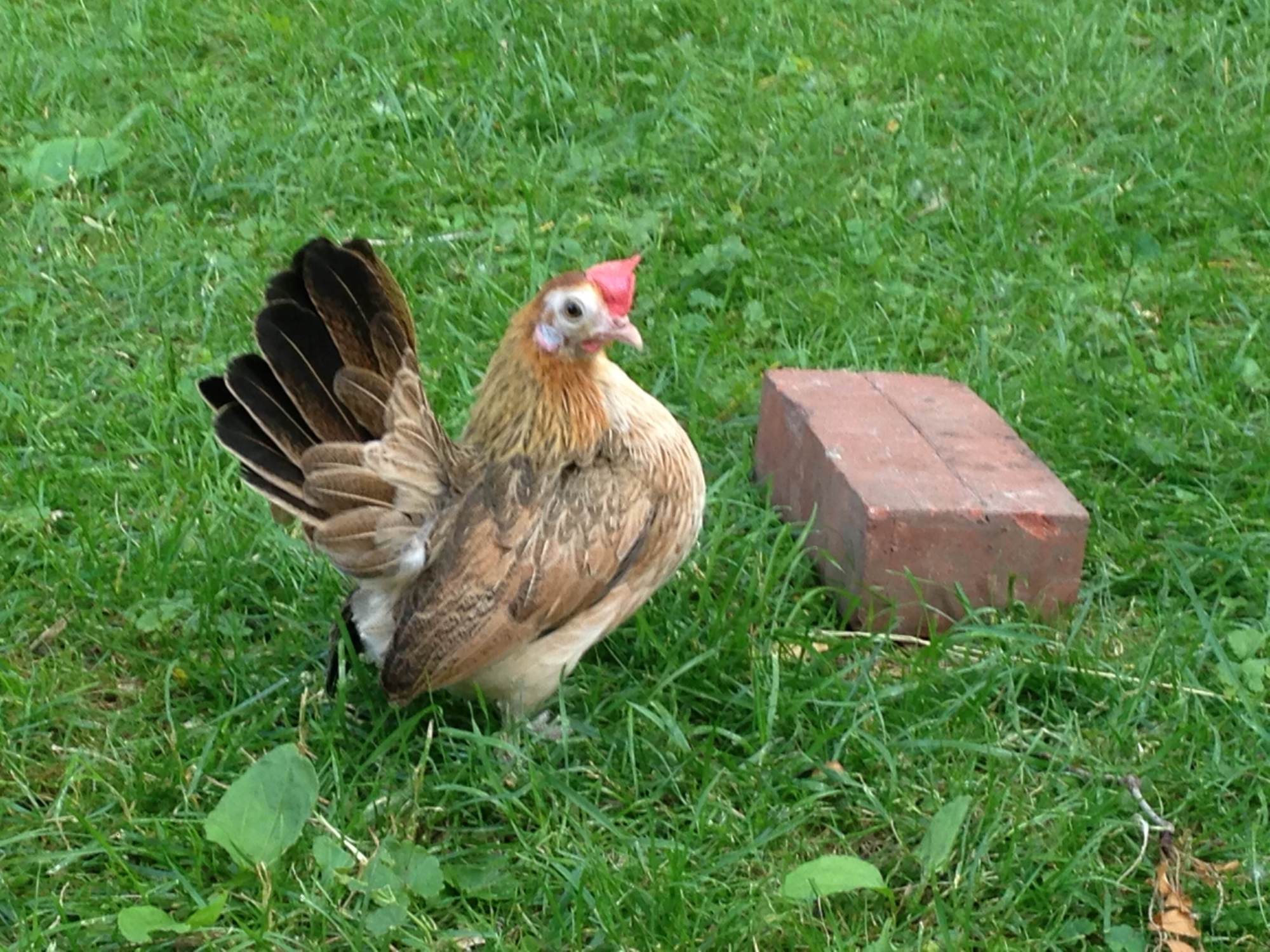 I rescued a bantam, not sure what breed quite yet, perhaps an Old English? She is really tiny, smaller than I think she should be but I think she is still youngish? All I know about her past is that she was living IN an apartment with an older, disabled man and all he fed her was table scraps, pancakes in particular I guess. She's never been with other chickens or lived outside but is acclimating well so far.