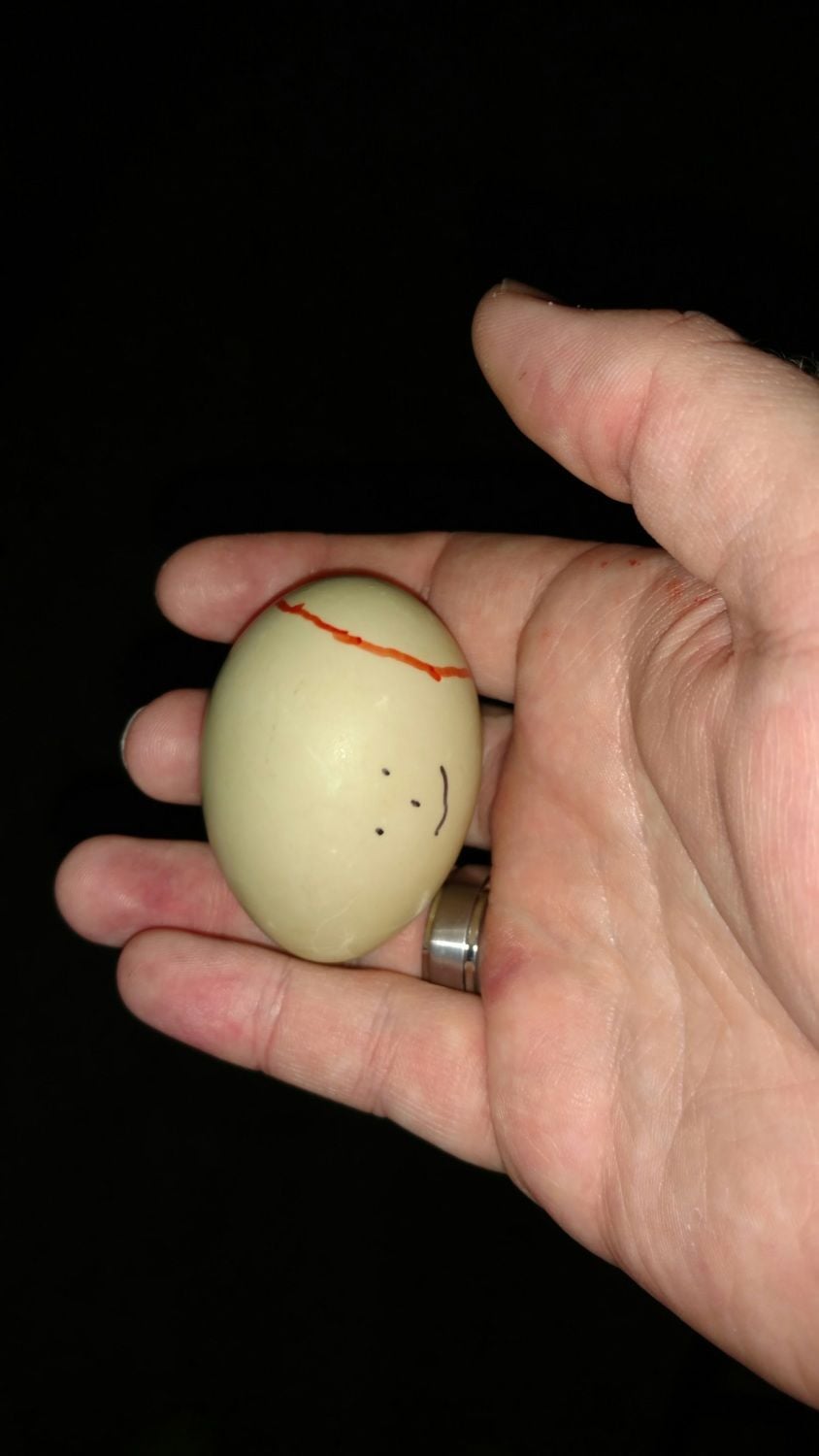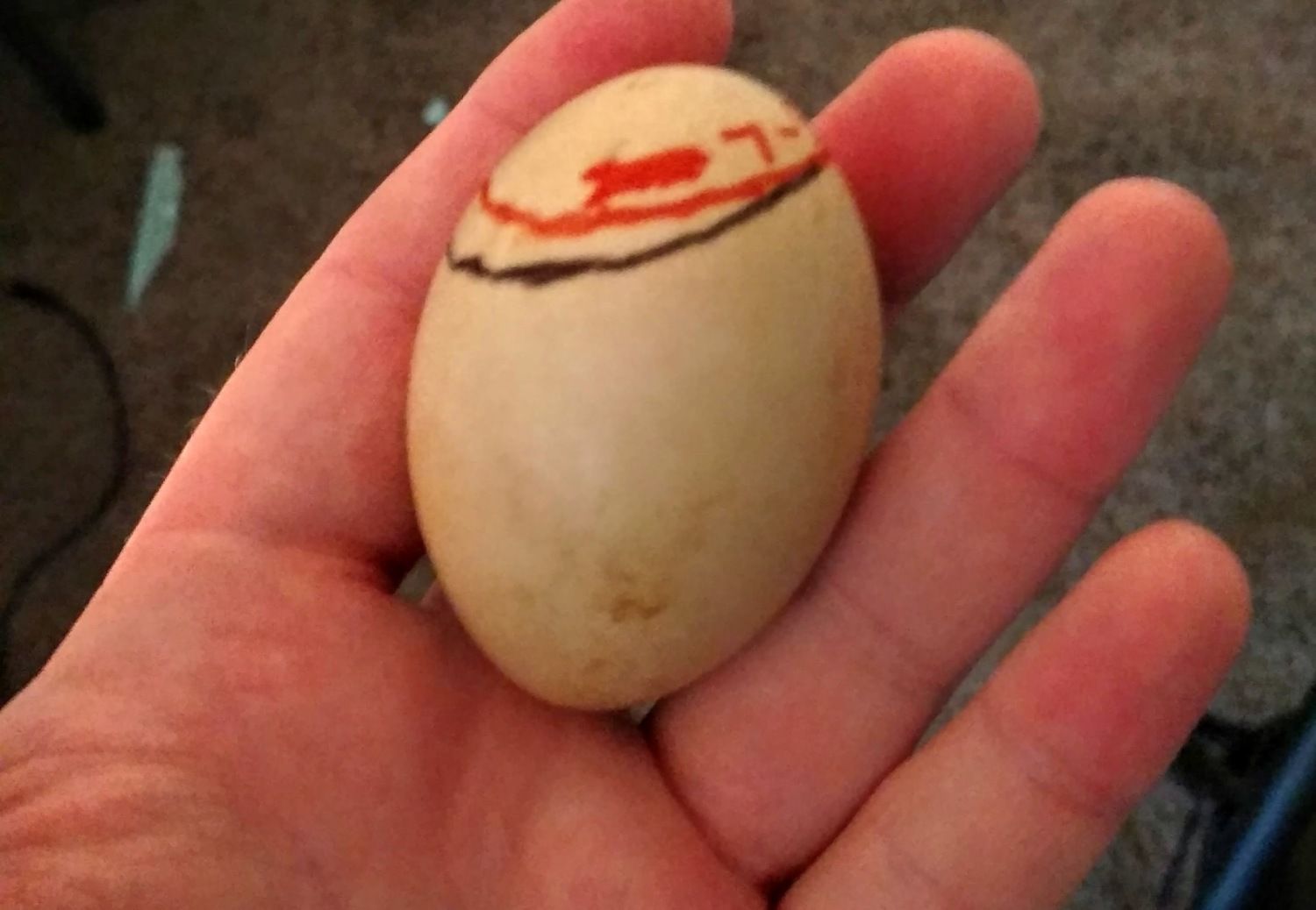 Here are the pictures I took tonight. The line on the egg was traced roughly 36 hours before the picture. I apologize for the quality/blurriness. I was trying to keep several small children at bay while taking these pictures