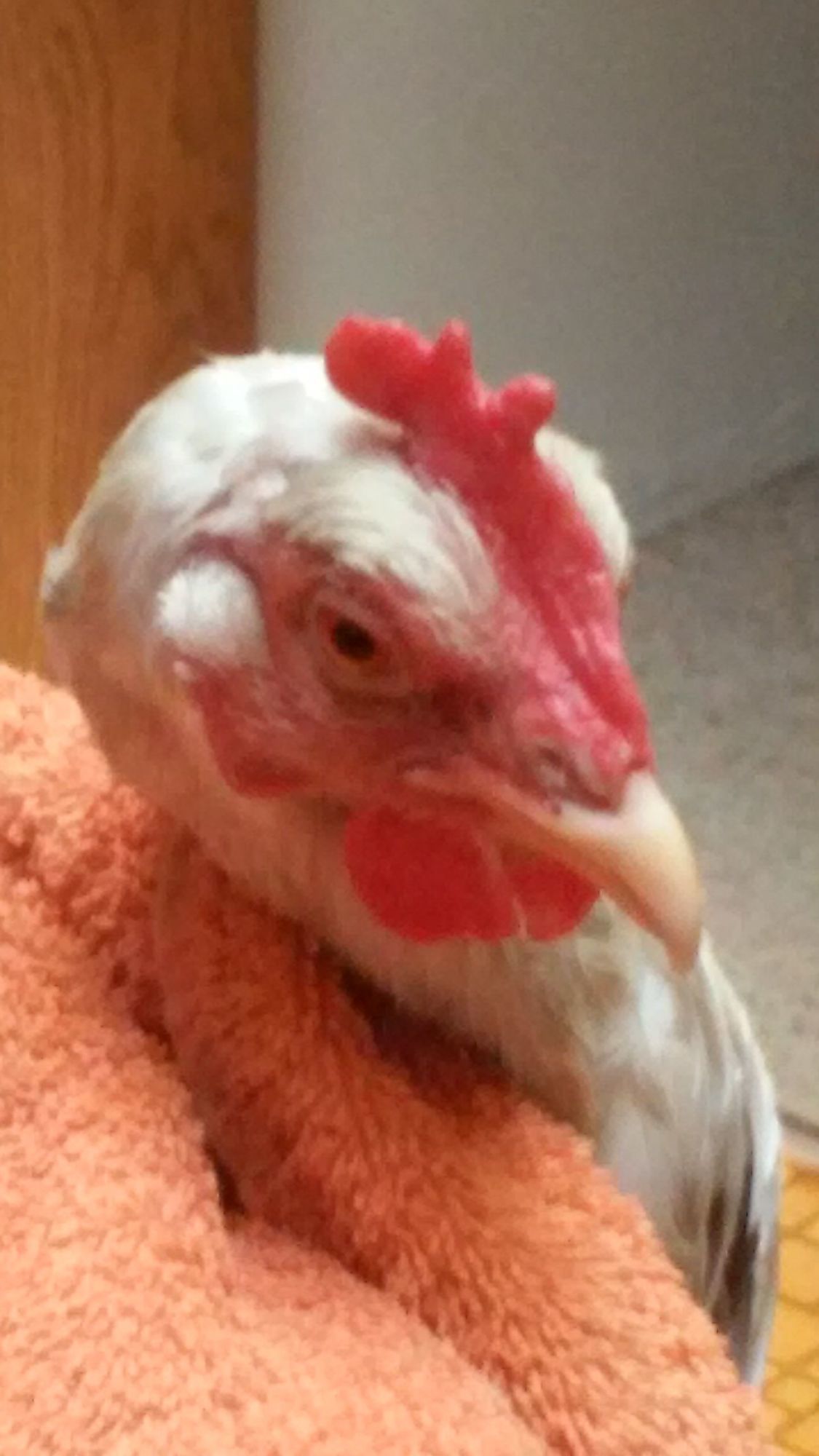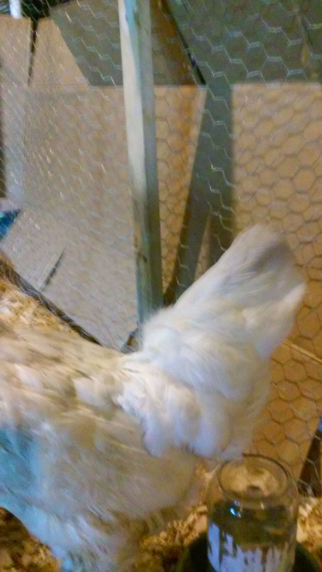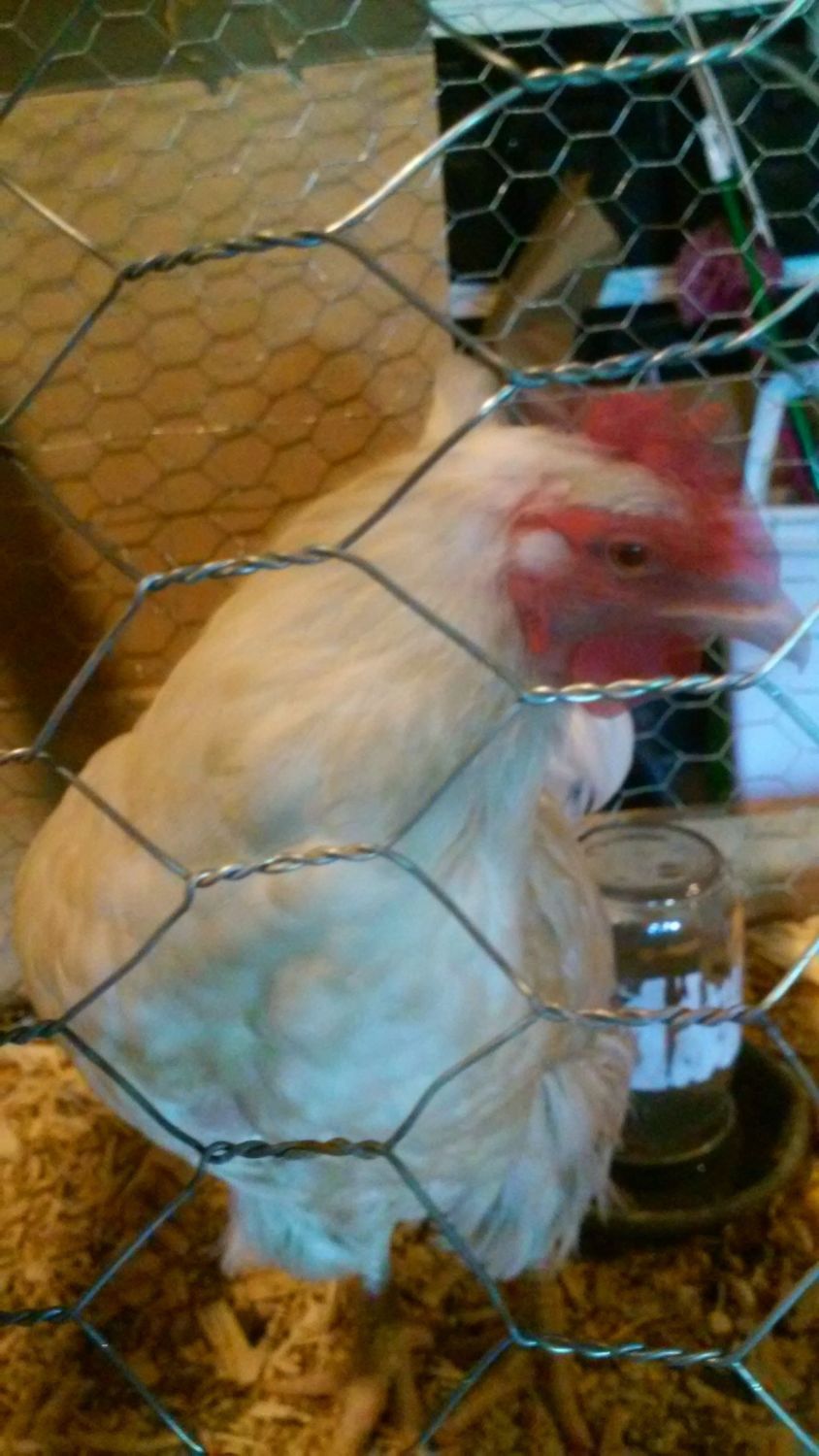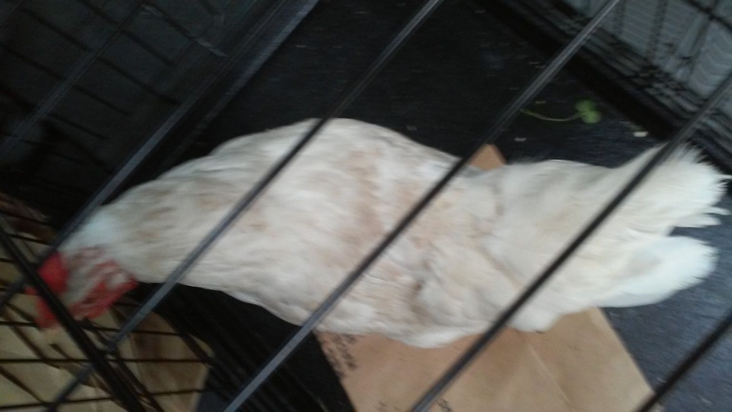 Hey everyone. We just rescued a hen today. We have a small flock of 6, 6 month old barred rocks. We rescued a white chicken (have no idea of breed) from an owner that had a flock of fifty and between wolves and a local dog this little hen was the last survivor. She was regularly laying daily white eggs and the owner thinks she is a little over a year old.