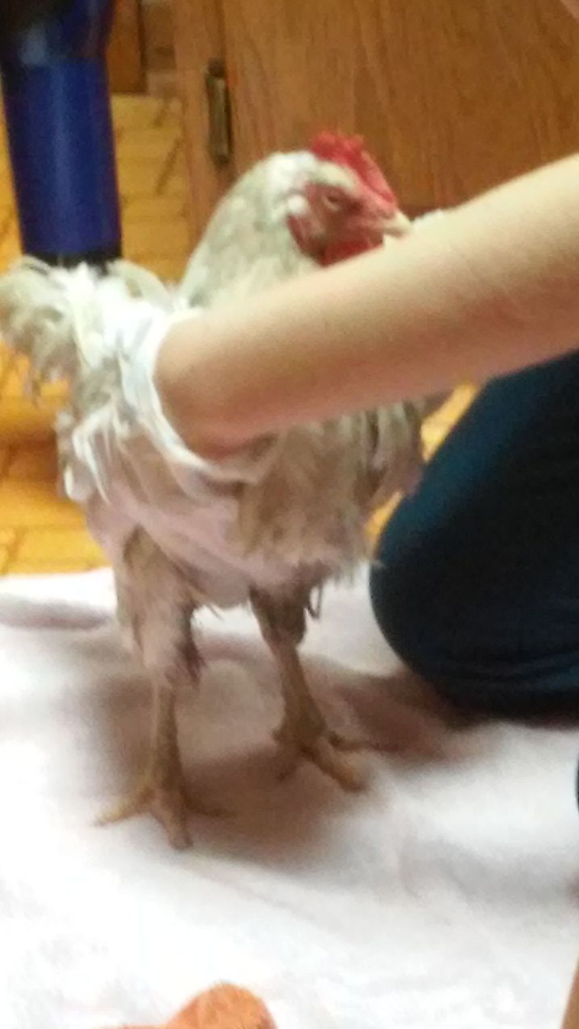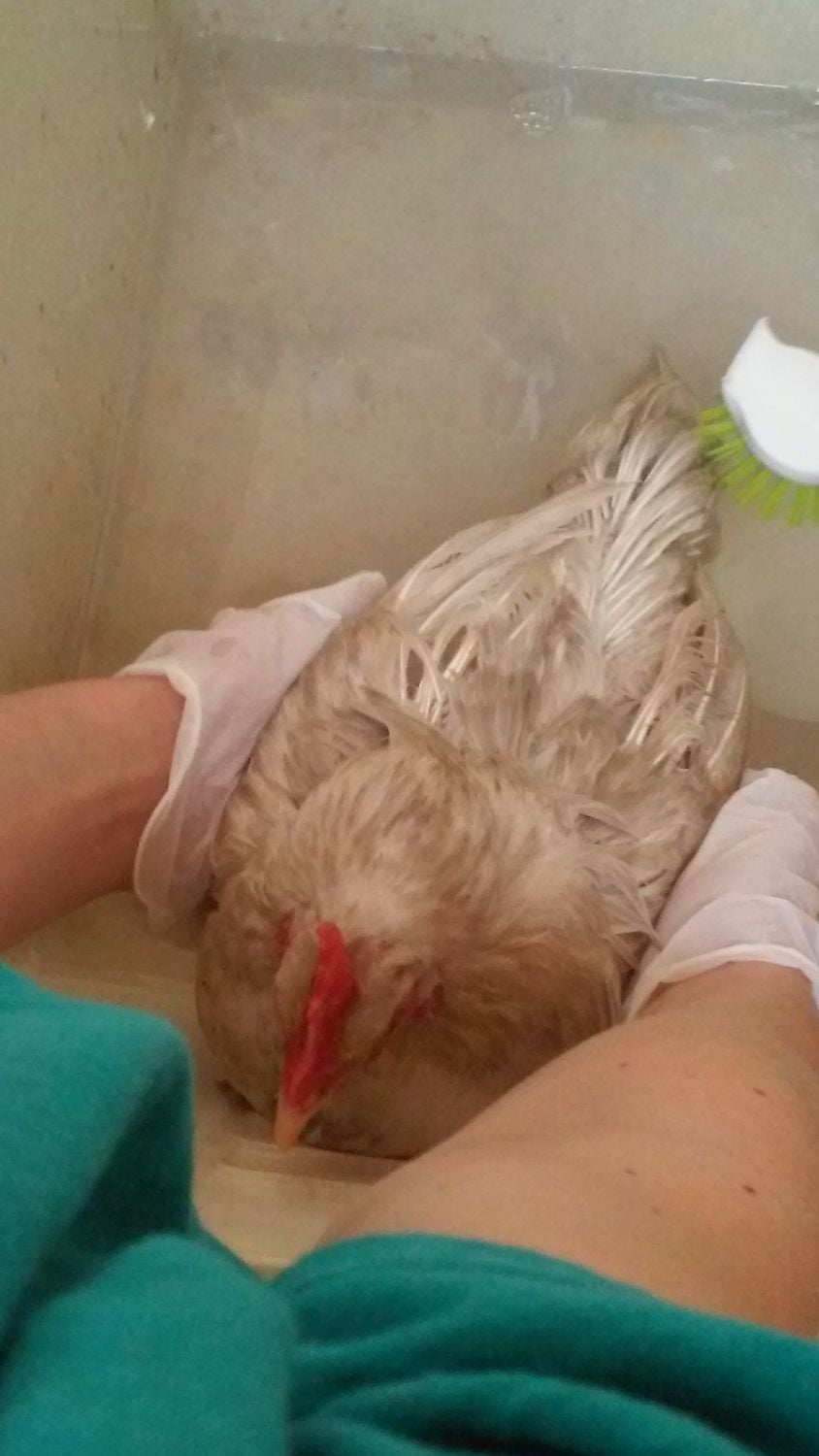 I have her quarantined in our garage. Plan on bathing her in the morning. According to the Storey's guide you can use flea and tick shampoo on them. I don't have that, but have some Dr. Bonner's Lavender liquid castile soap. Will that be ok?