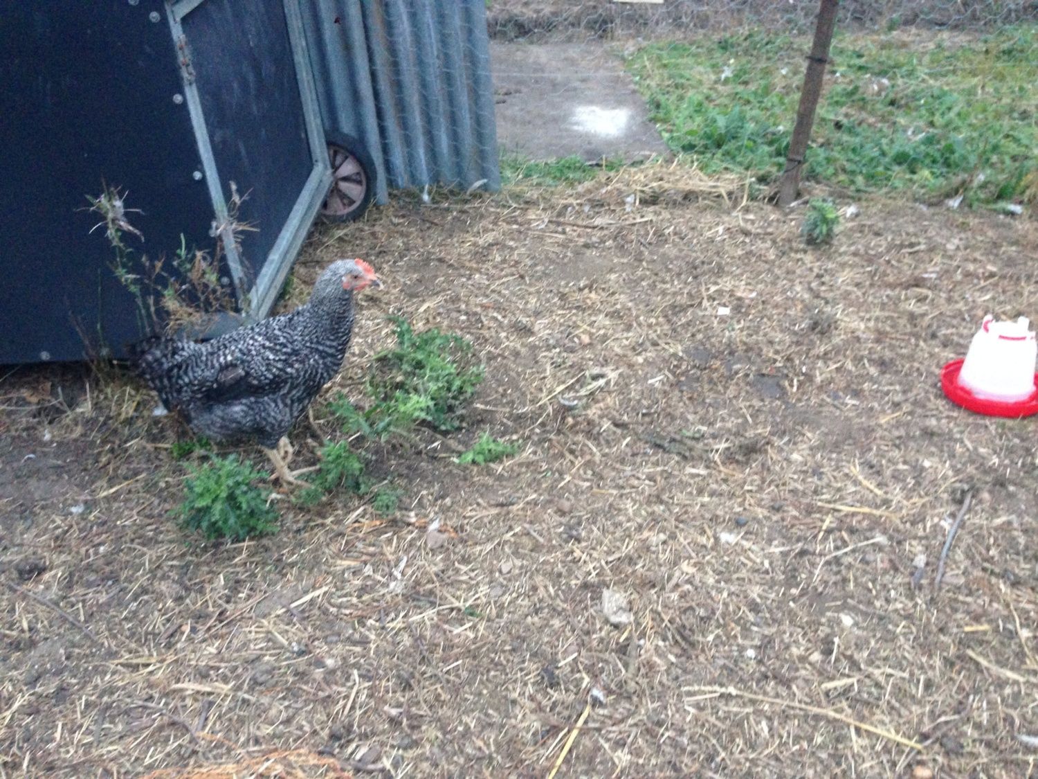 Our neighbourhood acquired a stray and a neighbour of mine who hates noise, and knowing I kept chickens, asked me to save him from her panicked clucking around his garden and so asked me to try and nab her.
