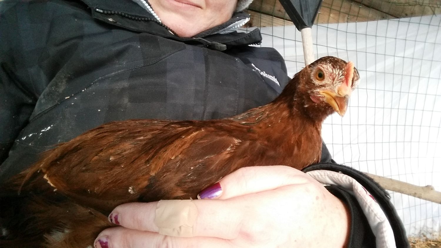 She's the brown one snuggled in on the right. All five of these hatched on the same day.