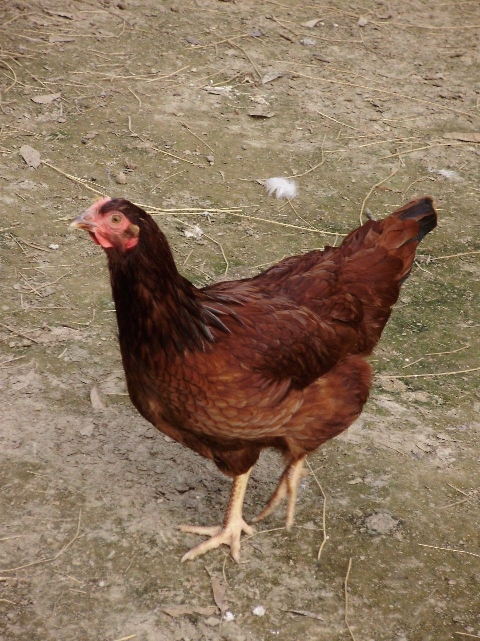 One large beautiful brown egg each day from her