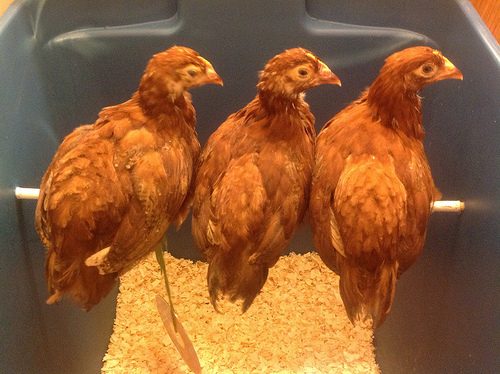 As they grew one hen always looked a bit different. There's Peaches on the far right. Fall of 2011