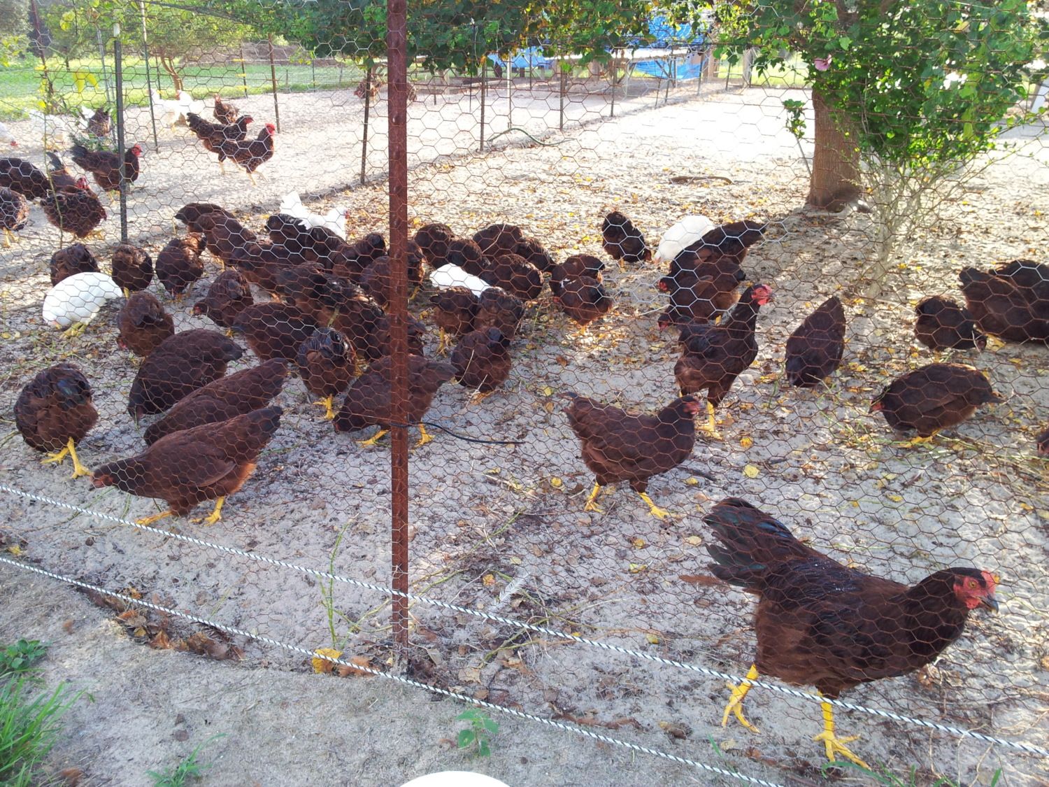 The second type of Production Red is a R.I. Red with some Leghorn blood added to add to the egg production and may have added to the brown-ish color of some of the Production Red the some hatcheries call there, "Dark Rhode Island Reds".