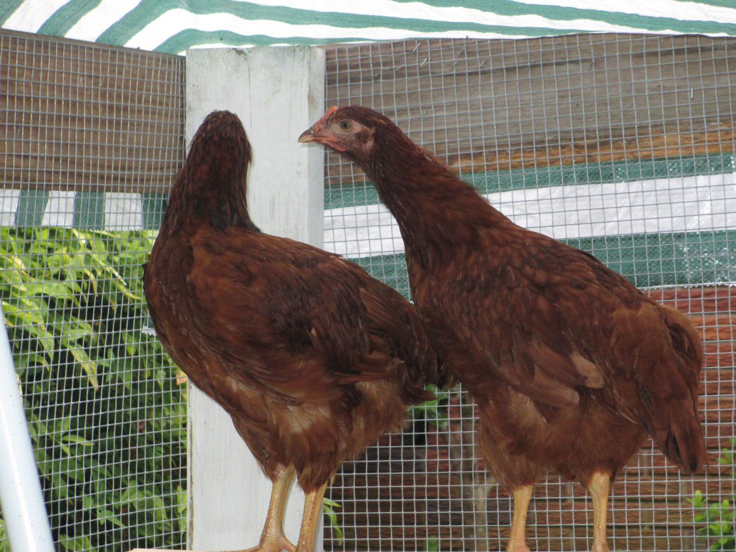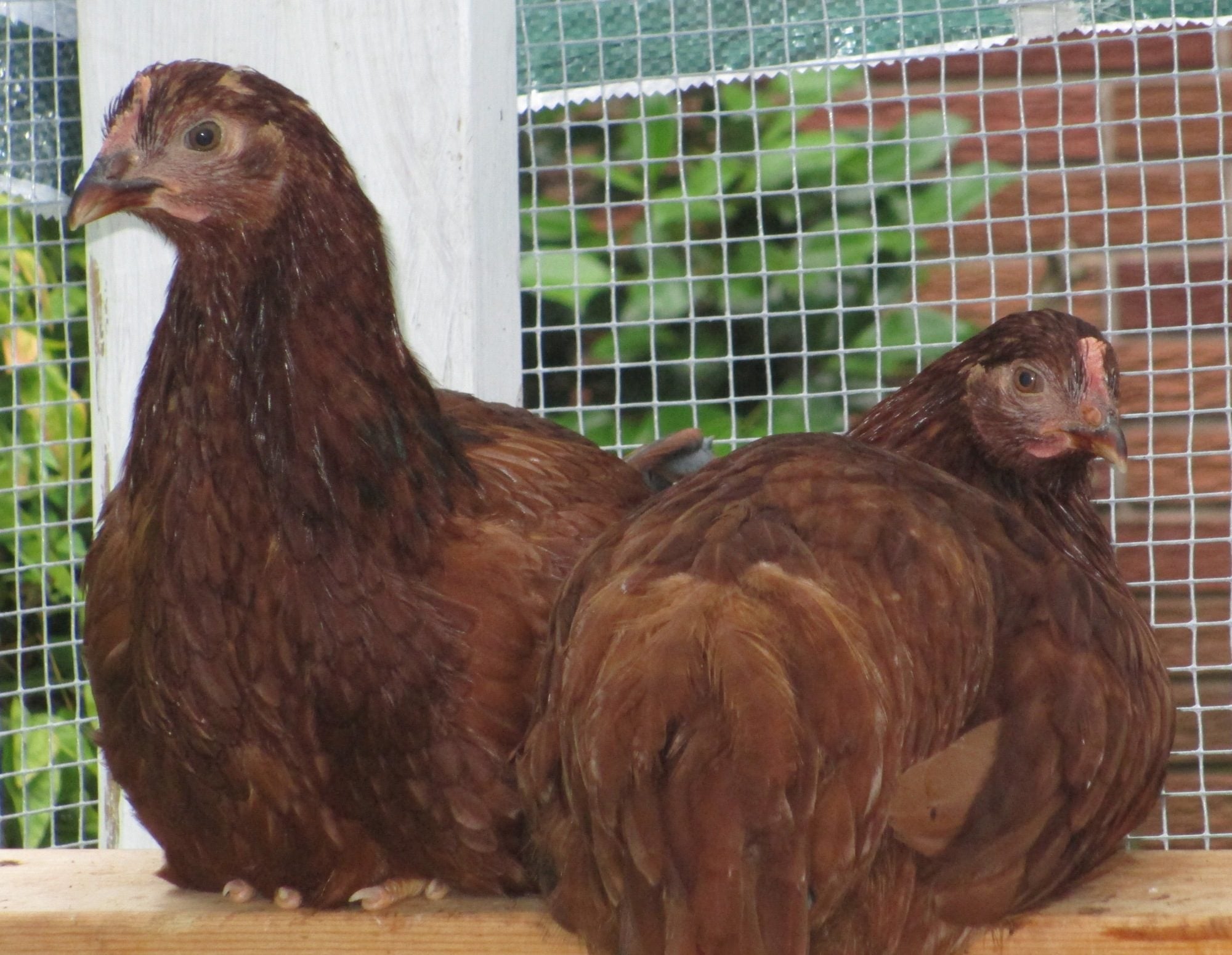 Something really wants me to be a "Rooster" mom. I keep acquiring them. Maybe I am wrong though. Please help. If one is a rooster I need to exchange it this afternoon. I swapped 2 Easter Egger Roosters for these 2 (Hens??) The fellow said they were both Rhode Island Red Hens...I'm just not comfortable with it though. Do they look like they have lacing? Or is that normal for RIR? The first 2 pics I believe is the hen. The next 3 look a little like a rooster to me but I am new to chickens and I have alot to learn. The last 2 are pics of them together.