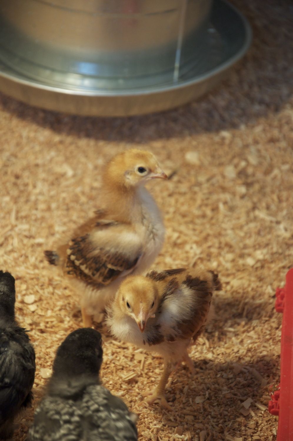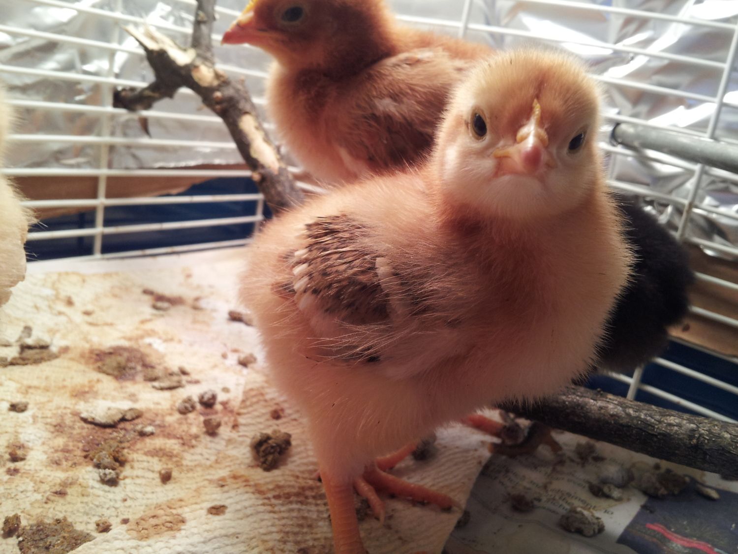 My Orping is on the stick followed by red sex-link then Rhode Island red.. Then the black sex-link.