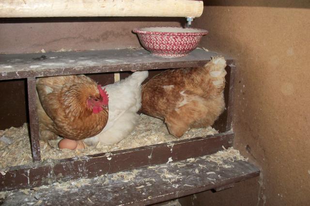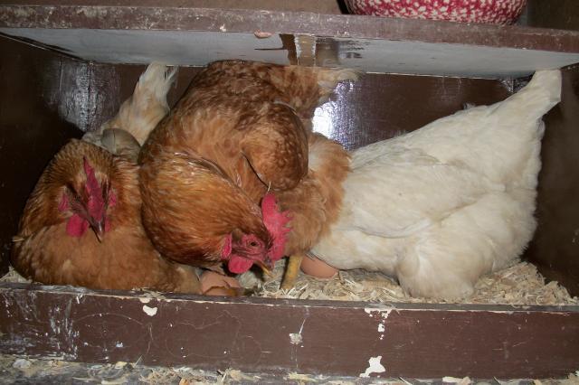 What on earth are they doing? Fighting over who gets to sit on the eggs? Chickens are so funny. I leave plastic Easter Eggs in my nests for my hens to fight over. And they do fight over them. Silly hens.