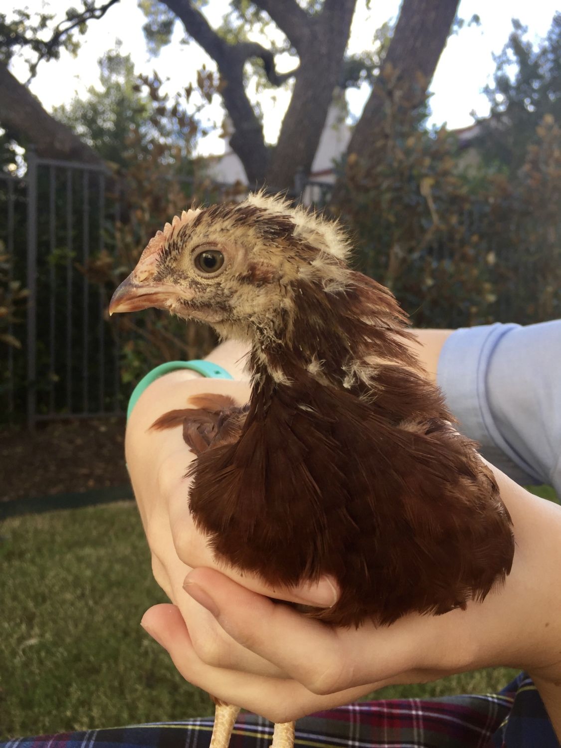 RIR is 9.5 weeks, Silkie is 14 weeks. I'm leaning cockerel on the RIR