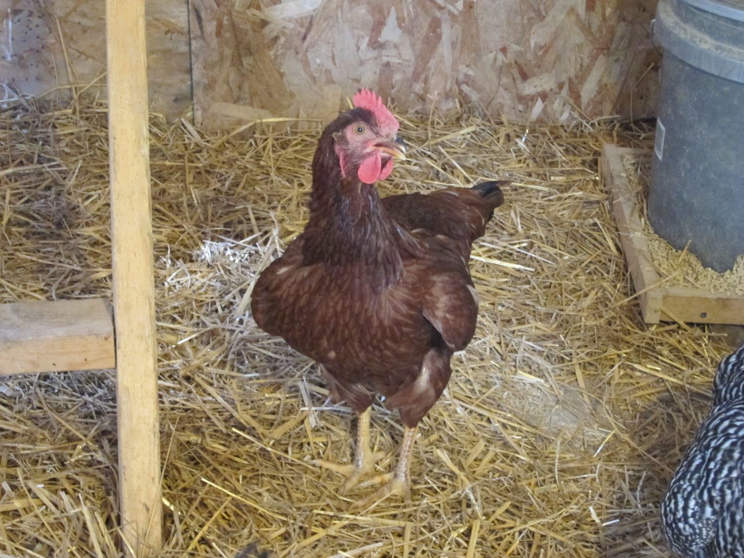 Mine is bit more skiddish but doesn't pick fights or is mean to the others. Do the RIR hens have red around their beaks too?