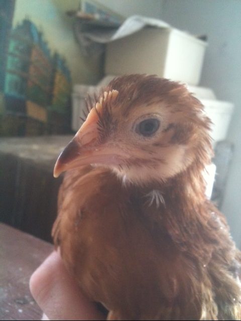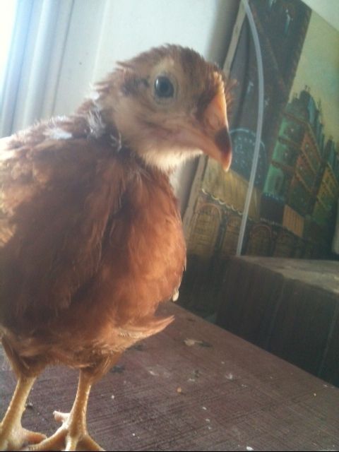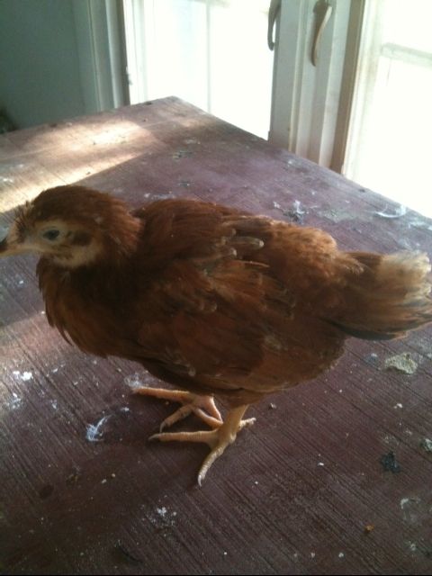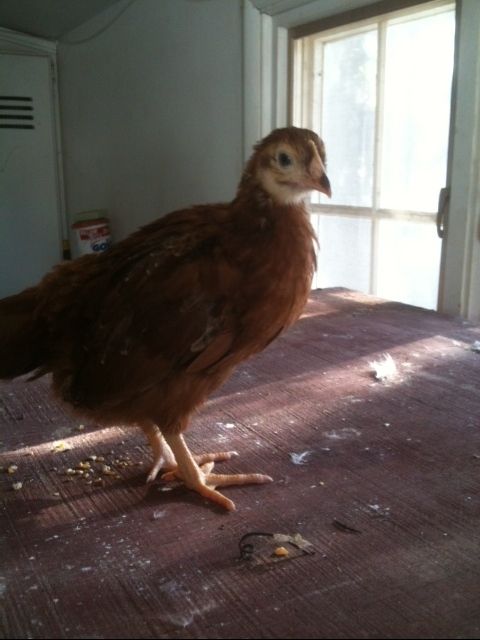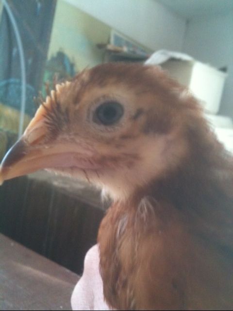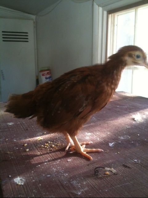 i just picked up this chick. i have many RIR pullets and have been trying to get a RIR roo for them but have been unsucsessful . this one is 5 WEEKS. comb is alot taller then any of the pullets ive had at this age. in the pictures,the long thin feathers growing on the head make the comb look short but the comb is much taller then the others at 5 weeks.