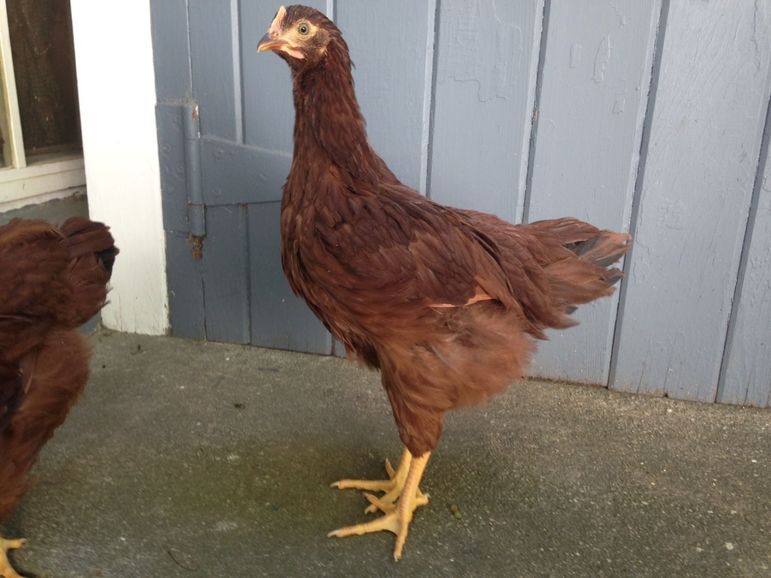And finally, Henny Penny. She's the smallest and friendliest, with the least comb/wattle development. Didn't have the head stripe. I'm not really concerned about her gender; I'm obviously no pro and please correct me if I'm wrong, but she looks like a pullet to me.