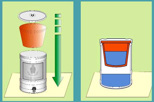 This is a ceramic water filter common in third world countries. Its reasonably cheap and will clean the water of everything but chemicals.