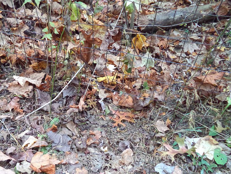 DH and I began clearing that overgrown lower fence line ourselves today. I did find a low spot, maybe where water had run, with a belly slide so at least I know how the black dog got out so fast and we never saw it come back around with its companion. I put a scrap piece of fencing over that place temporarily so I think I've fixed all the lower issues we found with the entire fence.
