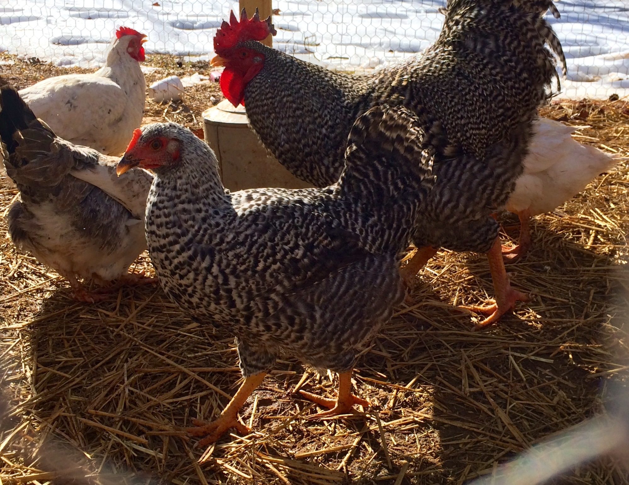 Welcome to Backyard chickens. You can post photos here, or at "what breed or gender is this," for more opinions. It helps considerably if you can state how old they are in the pictures. You have a definite rooster that looks sorta "cuckoo Marans mixed with something else, his comb shows frostbite at the tips. You can try putting Vaseline on his comb before her goes outside for the day- it gives a little protection.