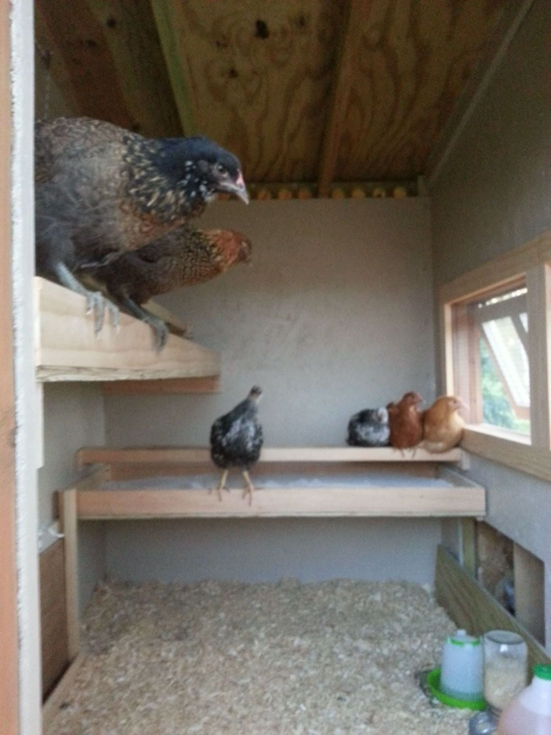 I will have 8 pullets as well. I like your set up! How wide is your poop board? How far apart are the roosts?