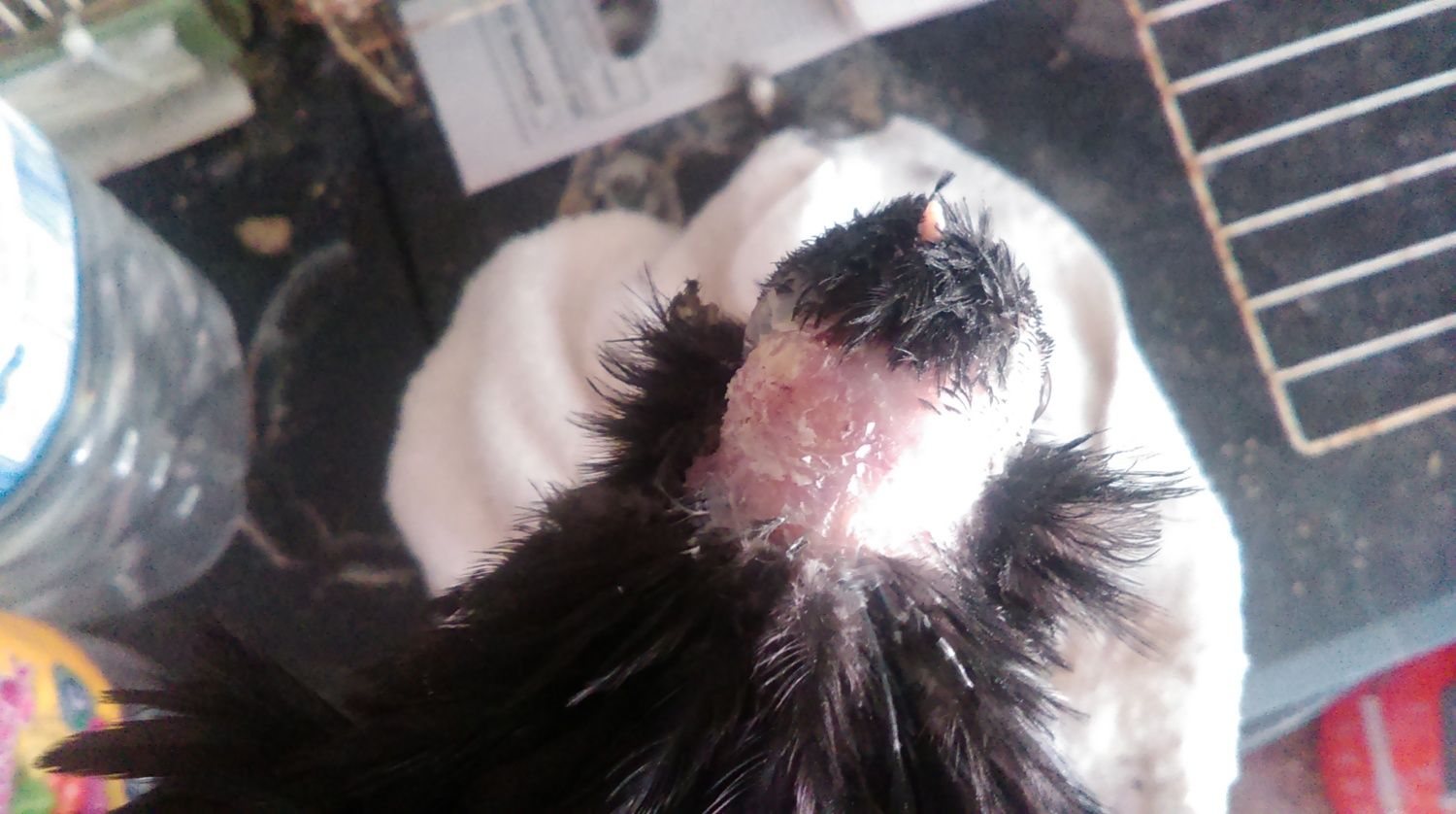 A pretty big bald patch, but she's doing just fine! Both ears and eyes healed properly too. She actually turns 6 months old this month, so I may be getting some eggs from her soon! Her breed tends to be picky about laying though, in fact her mom hasn't laid any more eggs since this girl was laid as an egg back in March.
