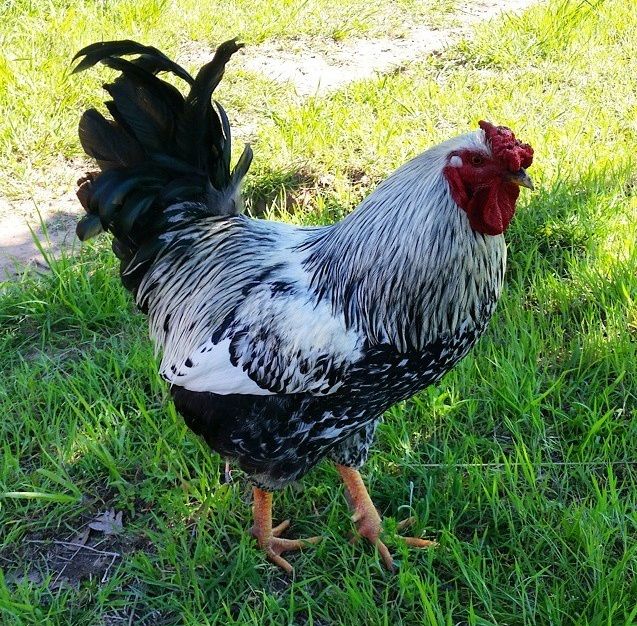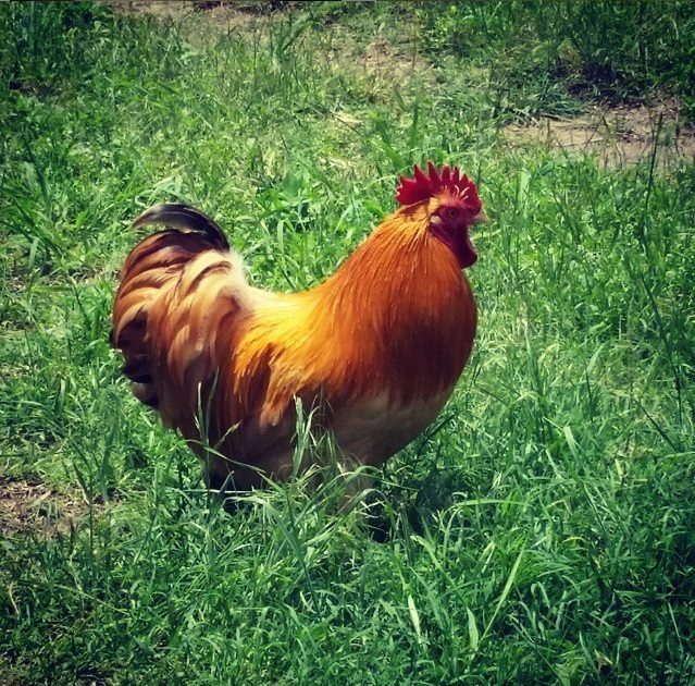 We have 2 mature roosters in our flock. The boss is Red, a red Cochin Bantam. He's a gentleman and very good at watching out for his girls. The next in line is our SLW, Penguin. Red was already mature and in charge when we added Penguin so he made it known right away that he ran the show and kindly keeps Penguin in line.