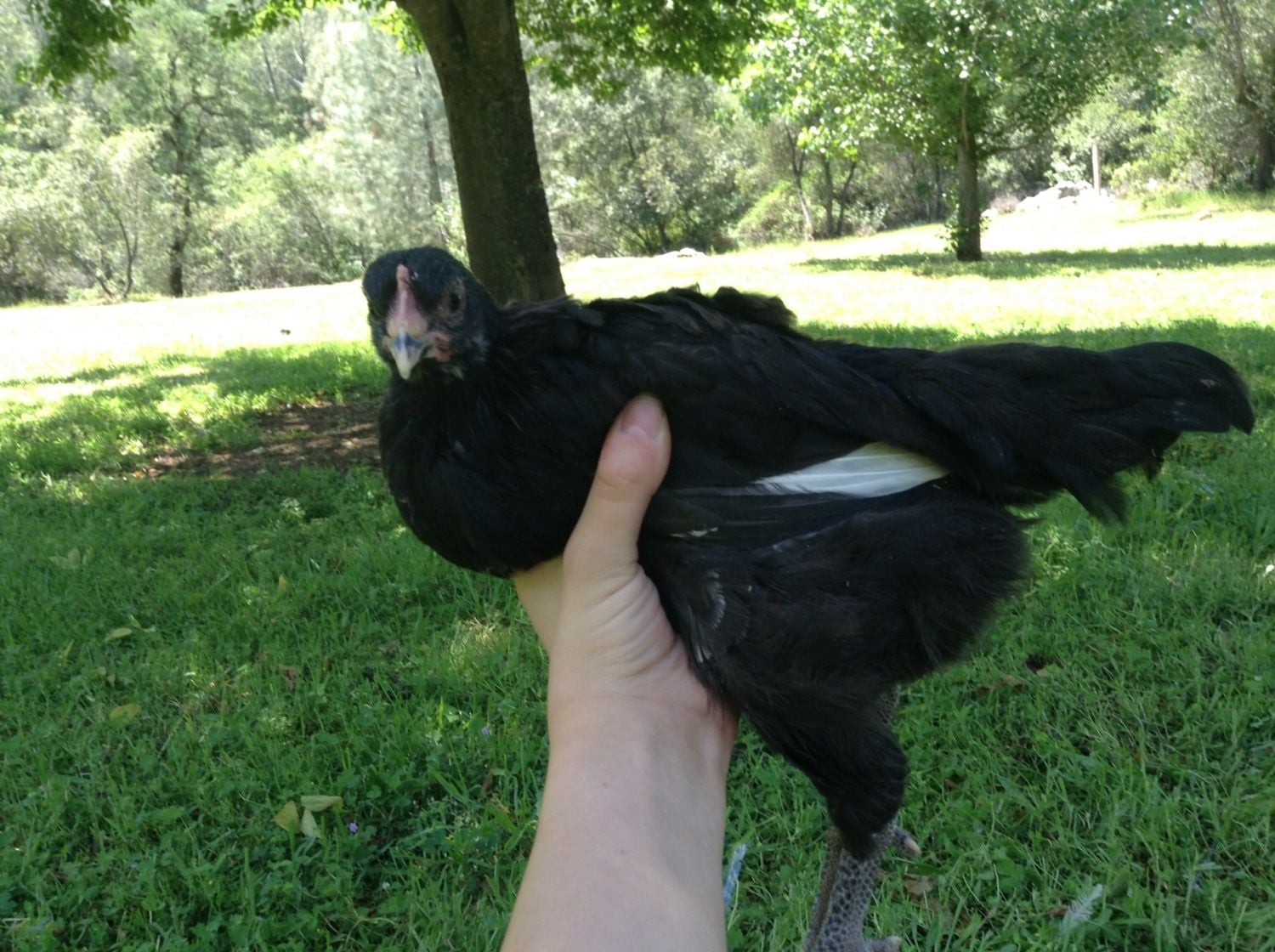 Hello, I have a rooster that is in need of rehoming. He is about a year old and is a very good protector, and takes very good care of his ladies! He's not that docile to me, but he does love it when you sit and offer him a treat, he'll take it right out of your hand. He is a mix between a Cuckoo maran and golden laced wayndotte.