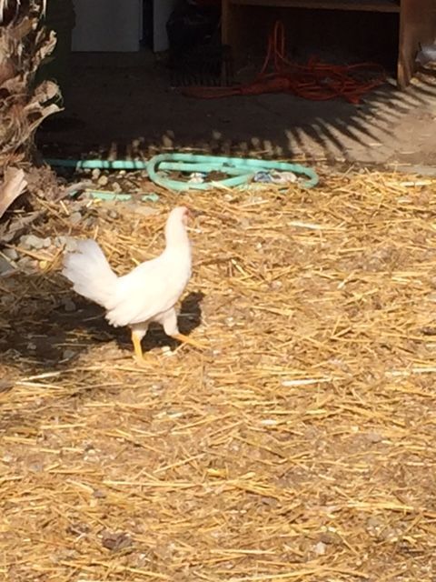 I think the white is a cockerel. It's just too leggy to be pullet. Not to mention he looks young, age I'm thinking no pullet excepting rose comb would be showing red in comb.