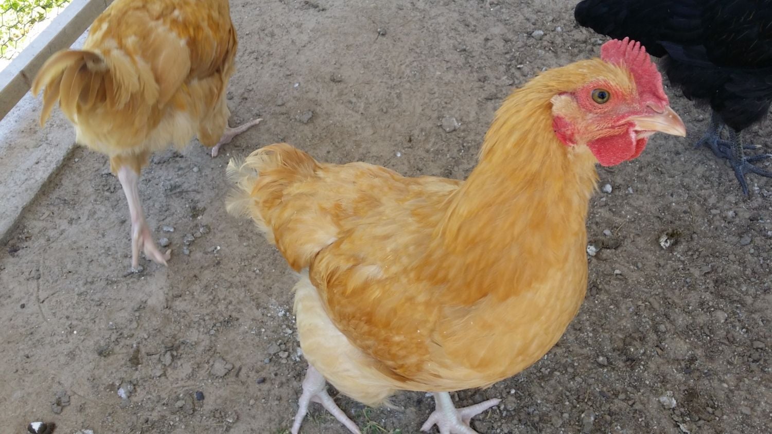 The buff Orpingtons are 13 weeks old. In this picture you can see the rooster in the back but what is the one in the front. The tail is more like a hen tail.