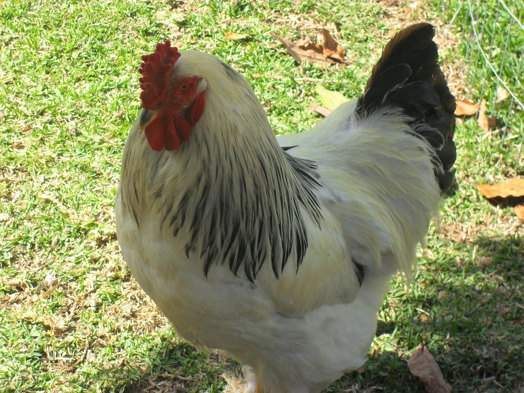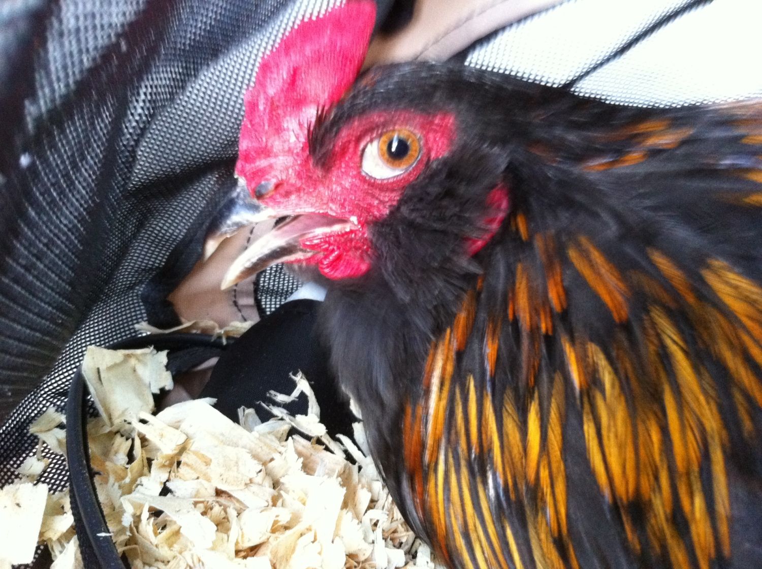 The sun was shining just perfectly on Red (my Silkie/quail bantam cross). Then what made it even better was when he started crowing. But you can almost never get a perfect picture. As you can see.. he was blinking in this one!