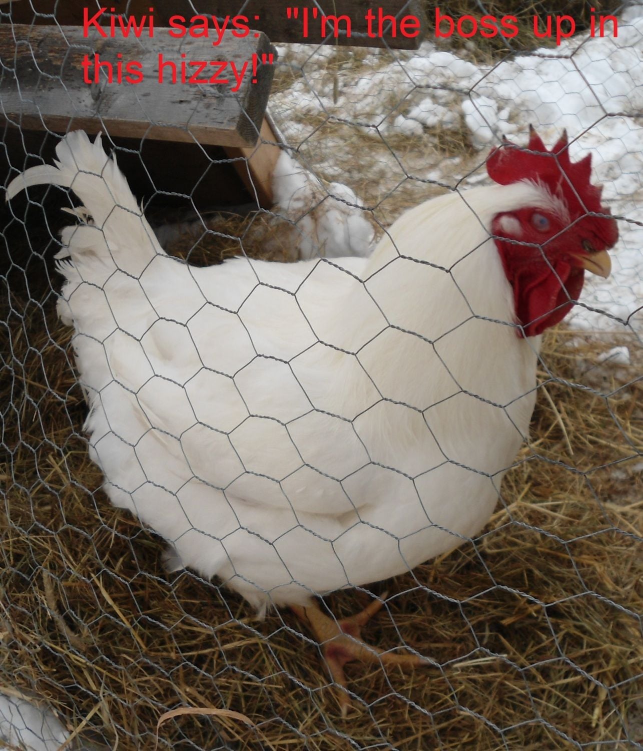 My last post on this: We took Kiwi to a lovely woman to be killed. She raises show birds and knows how to kill them also, but doesn't eat them. After he is killed and processed she will give him to her neighbour who will cook him up. I felt completely comfortable leaving him with her, knowing I made the right decision for the animal, and that she would kill him efficiently and kindly. He has had a good life, almost one full year. His mate, hen Coconut, seems to be doing just fine without him. It is a complete relief, to me, to be able to go to the chicken coop now and just enjoy my hens. The End. : )