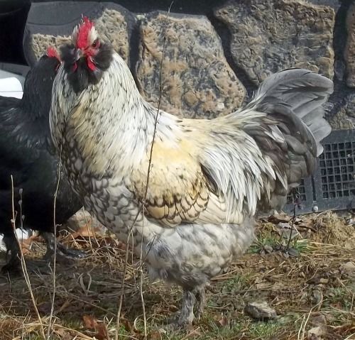 It appears that these two boys have the same dad and different moms, one was a Silkie mom, But what kind of Rooster produces this bearding look besides an Easter Egger? What colors are there in Ameracaunas?