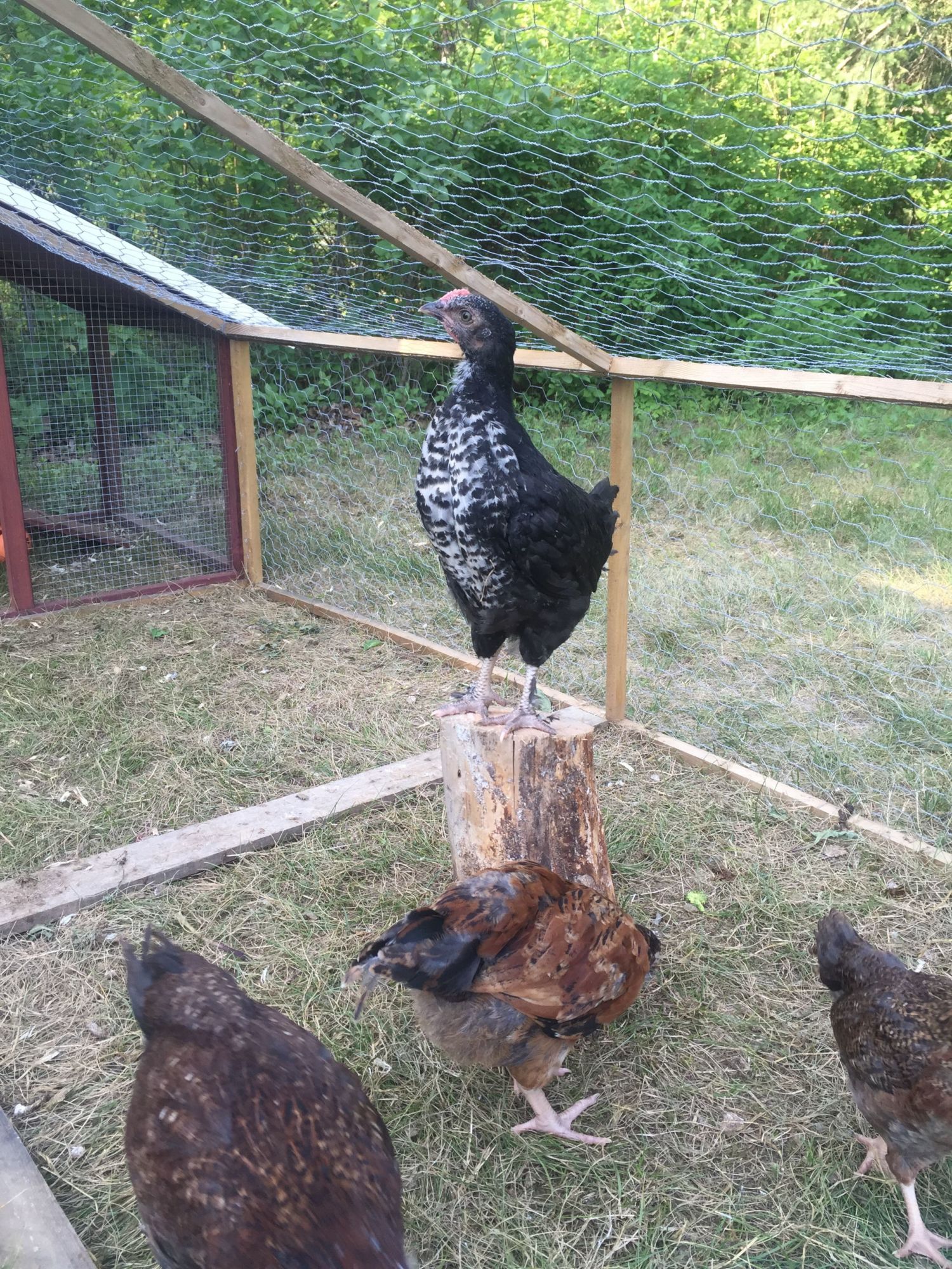 I'm only concerned because she seems to be the only one developing wattles in the picture her comb looks darker than it is. In reality it's a light pink a touch darker than flesh colour.