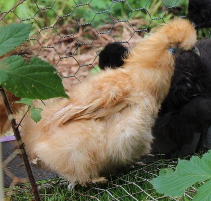 My silkie roo looked just like that with the "hair" pointed back versus the hen pouf ball.