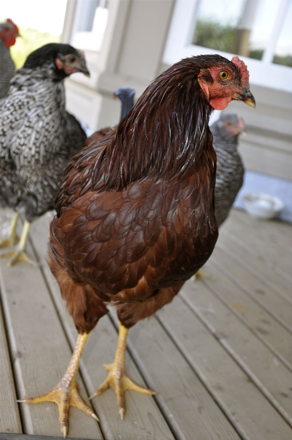 I see on here a lot of you know your stuff, so I was wondering if my two RIR, are actually RIR? They seem to have a rosecomb, they are dark mohagony red, and they have that 'wet' look on their feathers. The guy we bought our chicks from did have RIR and Buckeye...which I find very hard to tell appart. So...what do you think?