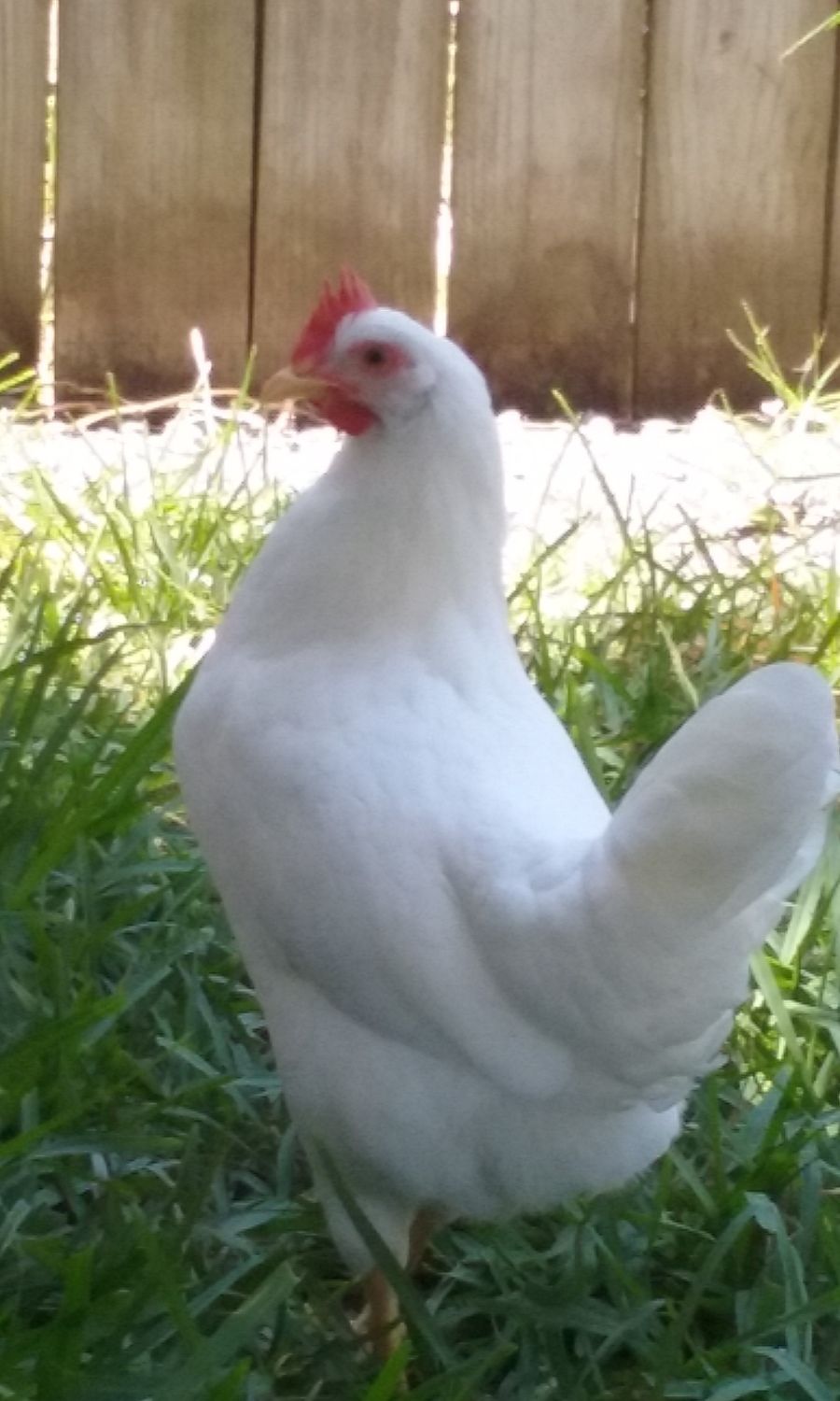 A white Plymouth Rock is like a barred rock, but white. Yours looks too slender to be a Plymouth Rock judging by the pic. My white rock is about 18ish weeks and heavier than my adult red sexlink hens. There can be a lot of variation in hatchery birds, since they often don't control their own breeding, and the first pullet is also older than the second. The "bottom comb," or the wattles, develop on the pullets when they are coming close to laying. You'll probably see them on the younger leghorn in a couple weeks!was sold as a sex link from TSC...I assumed golden sex link...
