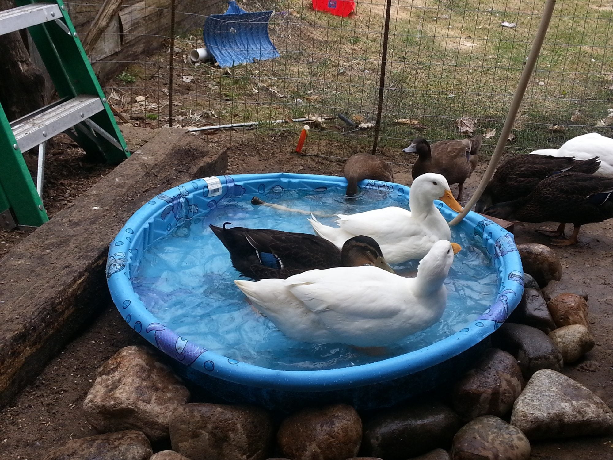 Ok i now have 3 week old ducklings... They LOVE water as you all know and at this point I am filling there water and adding dry bedding every hour! Not trying to get out of taking care of these precious stinky ducks but I don't know what to do at this point! We just finished their home/ pond/ run and I'm just curious if I can put them out there with a heat lamp.. So they can have their pond because right now they are swimming/ bathing in their water dishes! (Which isn't big enough for that!)