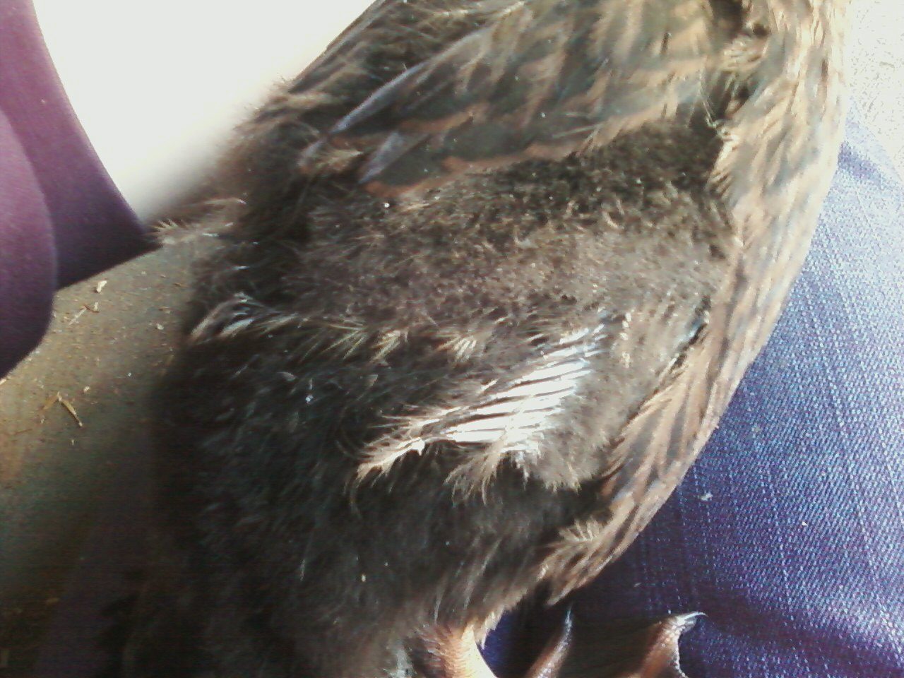 At 6 weeks they completely feathered or very close to it. So if there was no feathers she would of had to been no older than about 2 weeks roughly.
