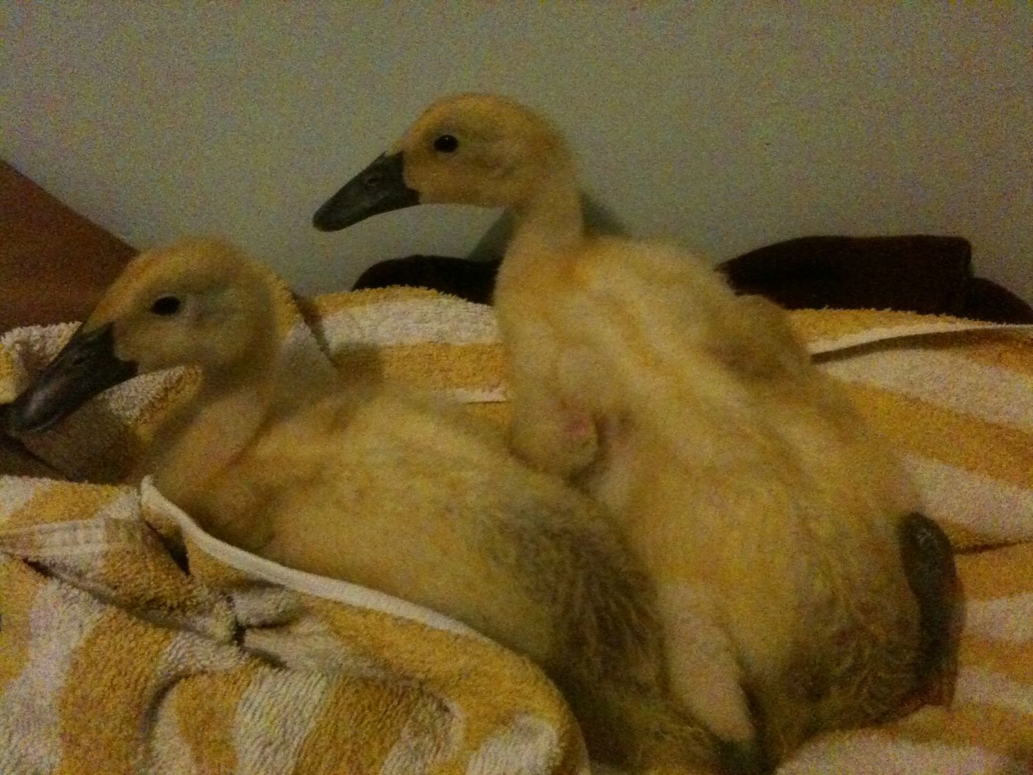 someone please help I don't know what to do I have 8 baby ducks 1 was jerking its neck back and forth so I thought it was choking or something (turns out it wasn't choking) but I put it along with the rest of the baby ducks in the bathtub with its food and water they ate they drank so I put them back and now ALL of them are jerking their necks side to side. are they ok? is it something in the food? any information will be greatly appreciated!!!