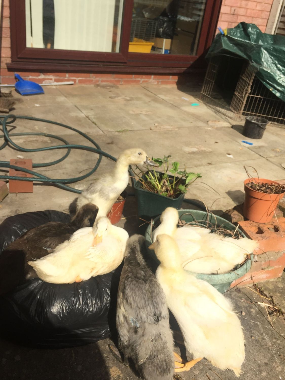 Yes, thanks CyndiD! Also, his color seems to be darkening bit by bit. He's "fully feathered" as I understand, but hasn't gone through his molt yet. I wonder what he'll look like then? It was really only today that I started to notice the dark gray/blue at all, it looks like the pattern of the fawn and white ducks.