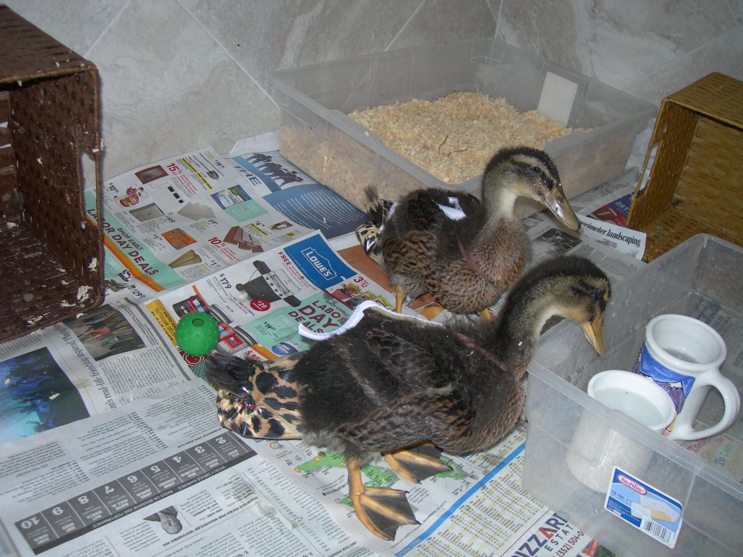 I have 2- 5 wk old rouen ducks and bring them in to stay in the shower (bed) at night. I leave food and water available at all times. wonder if it would be ok to keep food out. in hopes of lessening the gifts on paper in the morning. Also should grit be available and how much is too much for them. I'm new at this.I'm still at the sizing stage of diapers.......but they keep growing :) this is Doodles and Dandy