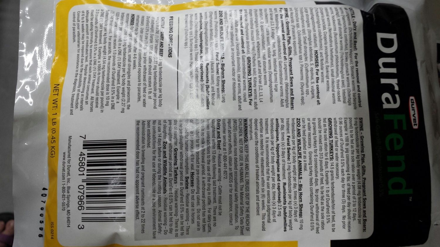 I'm thinking there are a couple possibilities. First, it may have been commercially recommended (for turkeys?) based on original rates of application before resistance developed. That may have come from the original manufacturer or during the licensing process... The published rate on the DuraFend bag (0.5% medicated feed pellets) works out to 7.23 mg per pound of mixed feed -- an almost infinitesimal amount -- and that's the manufacturer's published rate of application. They say to mix one pound of 0.5% medicated pellets with 313 pounds of regular feed...