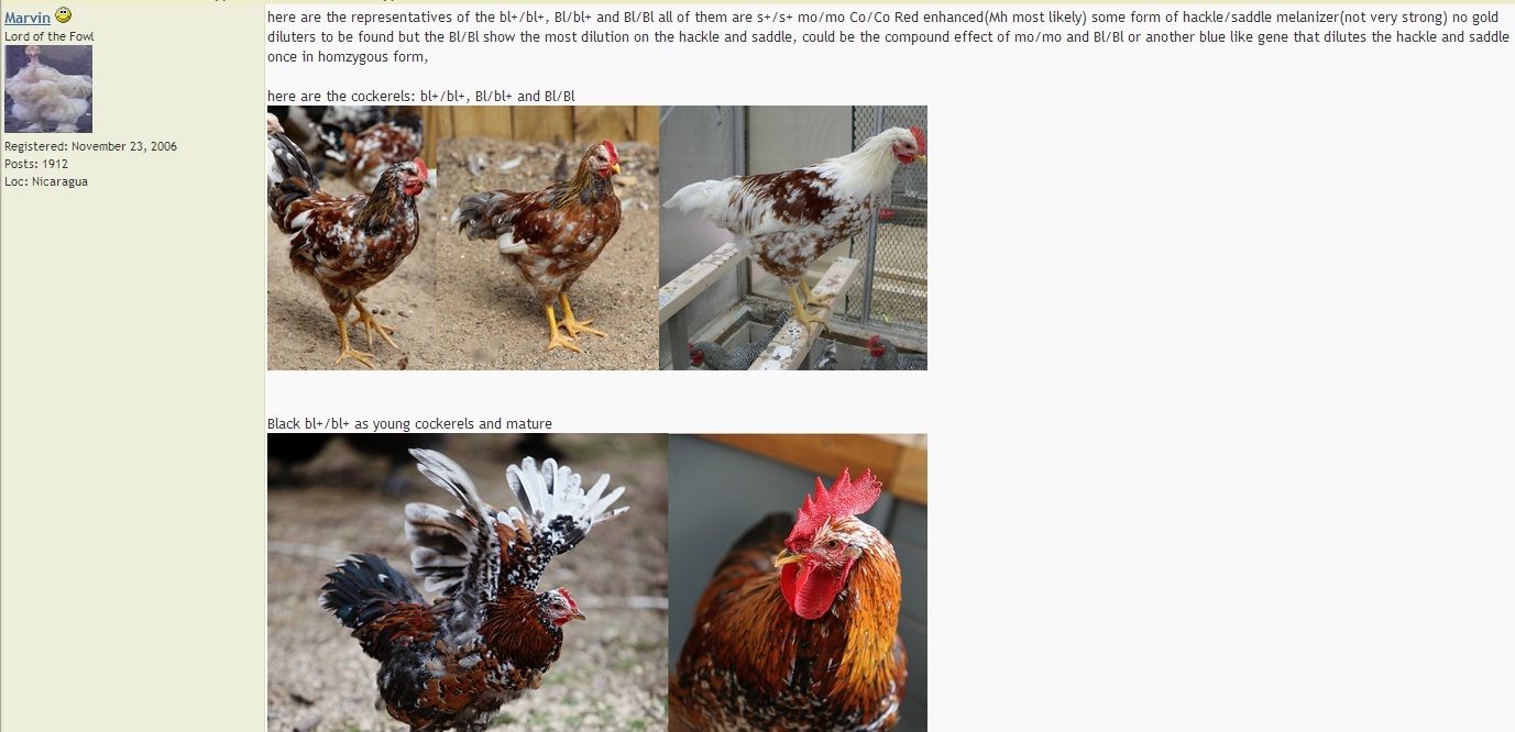 Jan 11, 2015 Thread starter #3 N nicalandia Free Ranging 15 Years Spirit Friend Joined Jul 16, 2009 Messages 10,869 Reaction score 11,089 Points 726 Location Stuck In a Dream My Coop My Coop umm its a shame that nobody has bite.. but here is the answer if you are interested in genetics http://www.the-coop.org/forums/ubbthreads.php?ubb=showflat&Number=113548&page=2