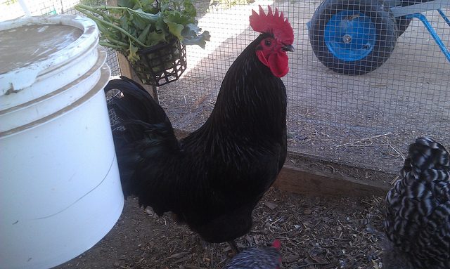 If anyone is interested in one my of roos, please let me know. He's a JGxSilkie mix, very large, aggressive/protective of the flock. I've had him as an egg along with his brother, but, after this problem with the hens, we need to rehome him or cull him.