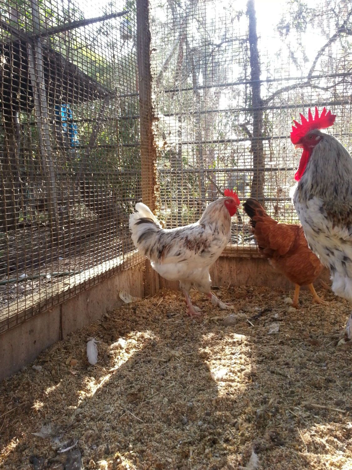 Yep the little un is a roo.... not quite got his tail fethers yet but he ahs the find hackle feathers on his neck... Very pretty.Hello, I need some input please. A friend has some Marrans and the youngest is 4 months and looking Roo-ish. There is no crowing or attempts to do so but there are two older roosters on the property. He/she was being aggressive to the Marran hen, so far no problem with the RIR. Any input would be welcome. The large rooster is dad.Thanks
