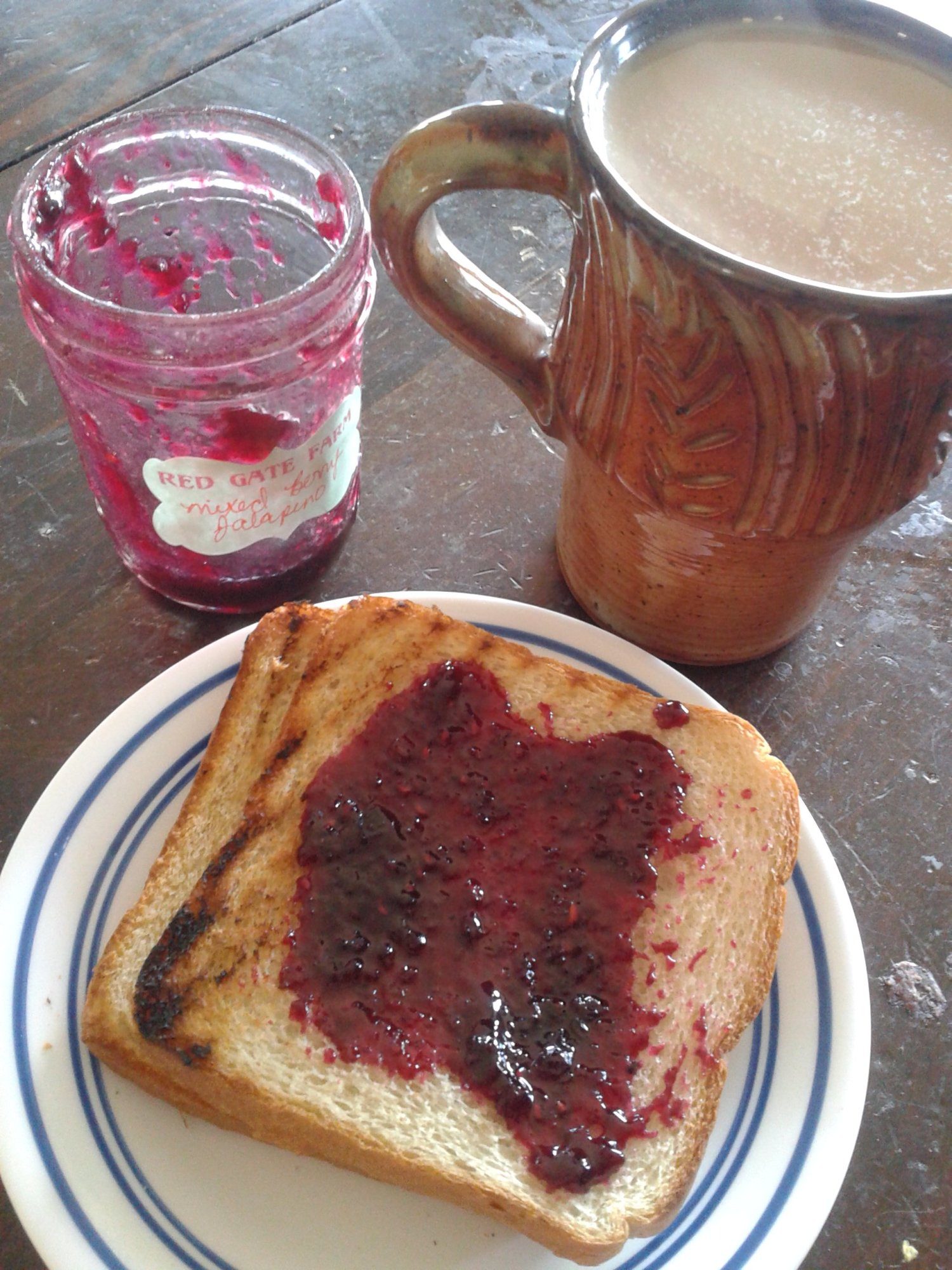 Starting my morning with some @chef glenn coffee and the last of my mixed berry jalapeño jam from Red Gate Farm (Renee). I am bummed that the next meet ups scheduled are on days that I can't go