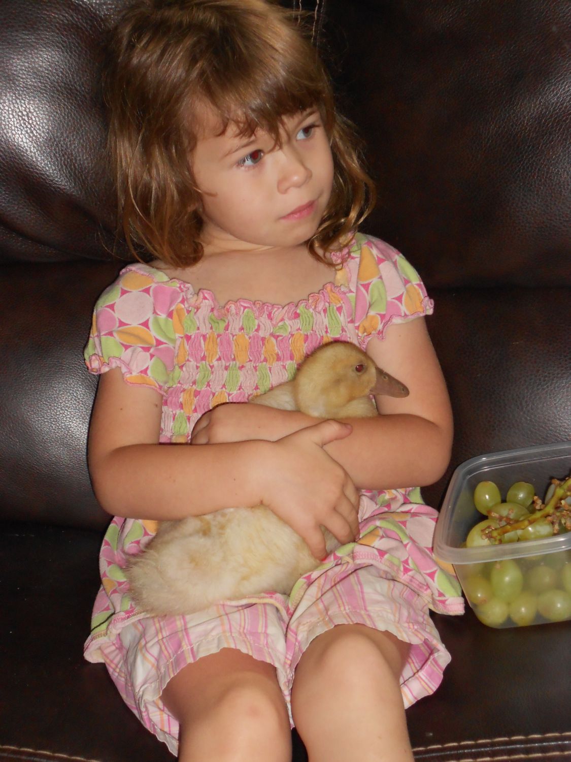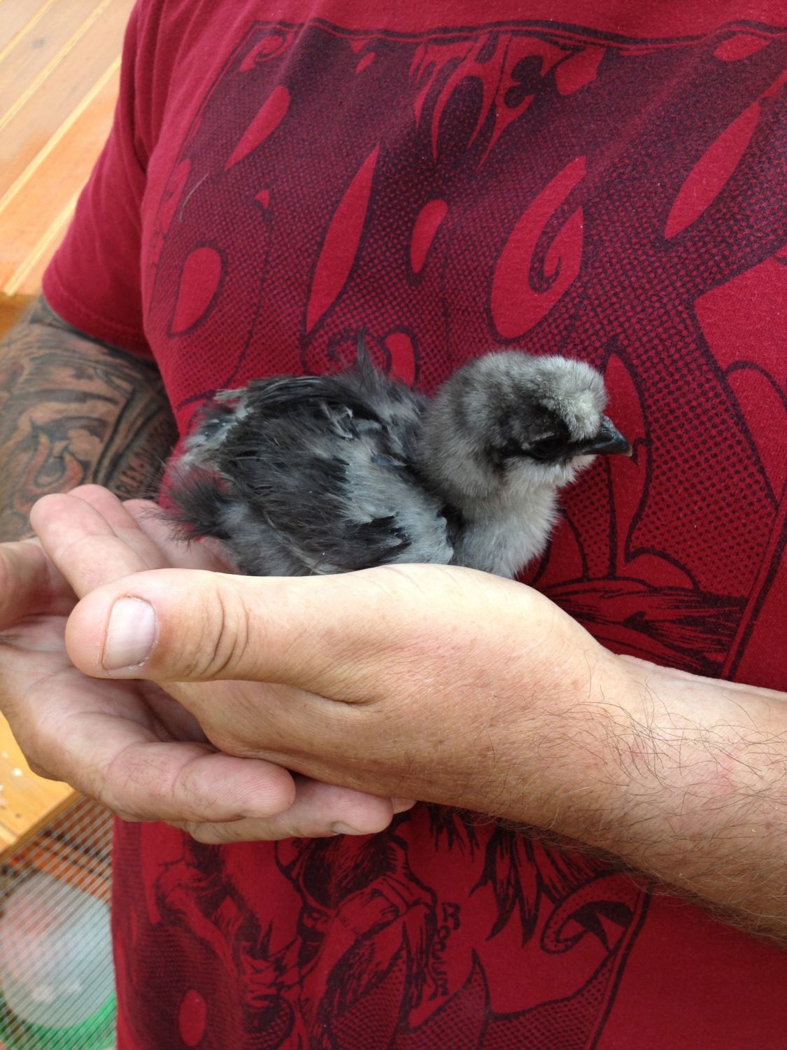 I'm completely amazed that your broody lets you get anywhere near her, much less near her chick. Mine will take off a finger if I get too close, even just to replace her water.