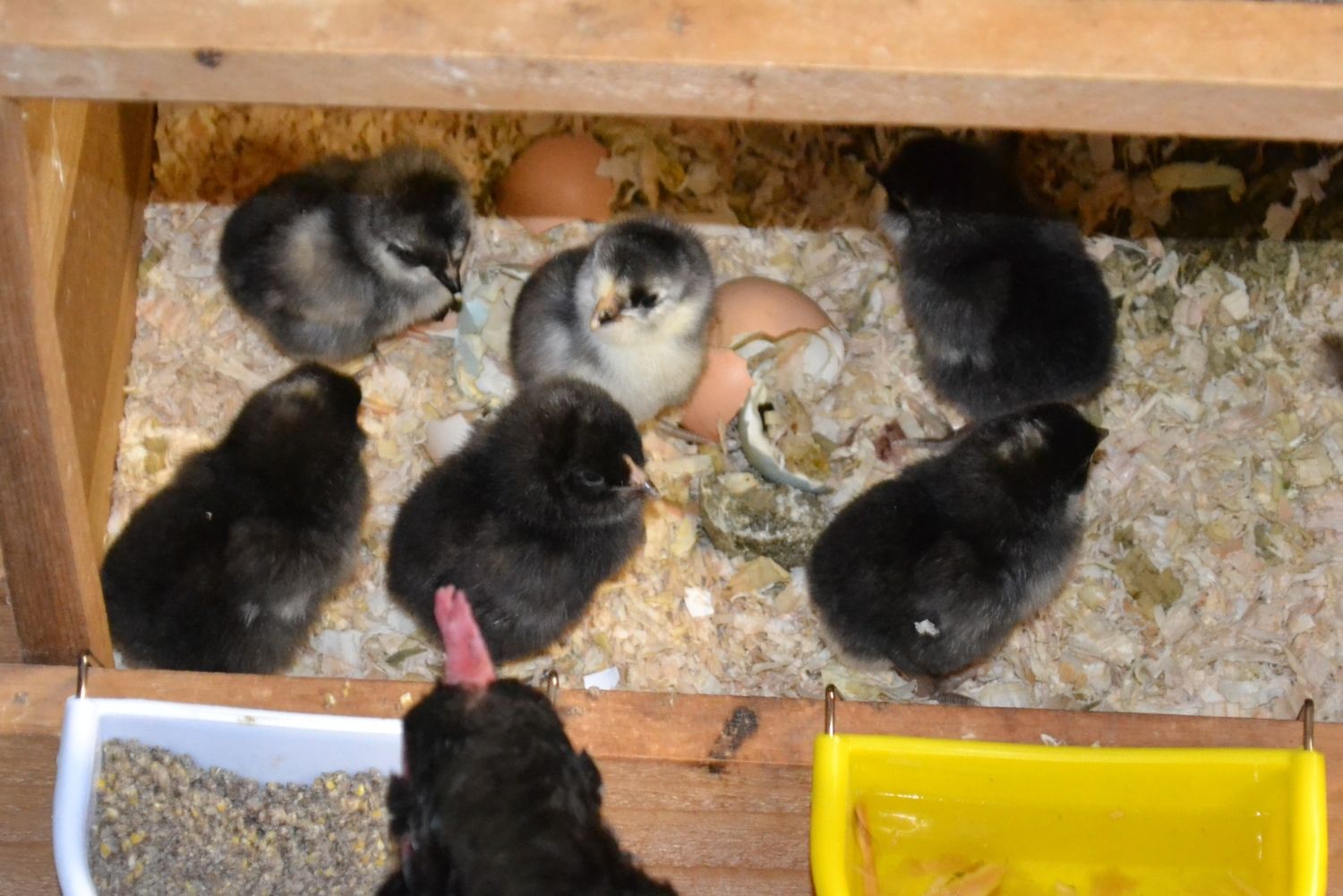 My broody gave me a little peek at her babies last night - there are at least four (out of six). I'm going to take the camera out there this morning and see if I can get a few pictures.
