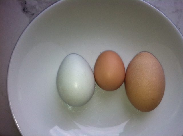 They're nice looking birds. I can't wait for them to get old enough to lay. (I checked, and they are 2 months old at the moment.)