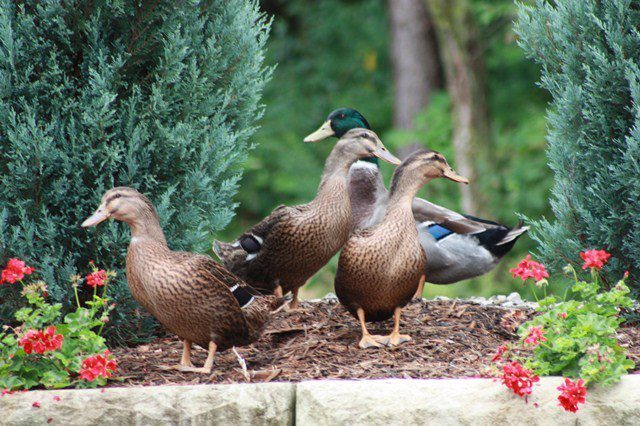 I did that with my chickens, I wanted a variety of egg colors and chicken colors...I had 2 Pekin Ducks with a mallard, lost them, then had 2 more pekins, coon killed them so...I decided to do the Rouen-bigger then a Mallard, camo coloring, can't fly and I reinforced my duck house!