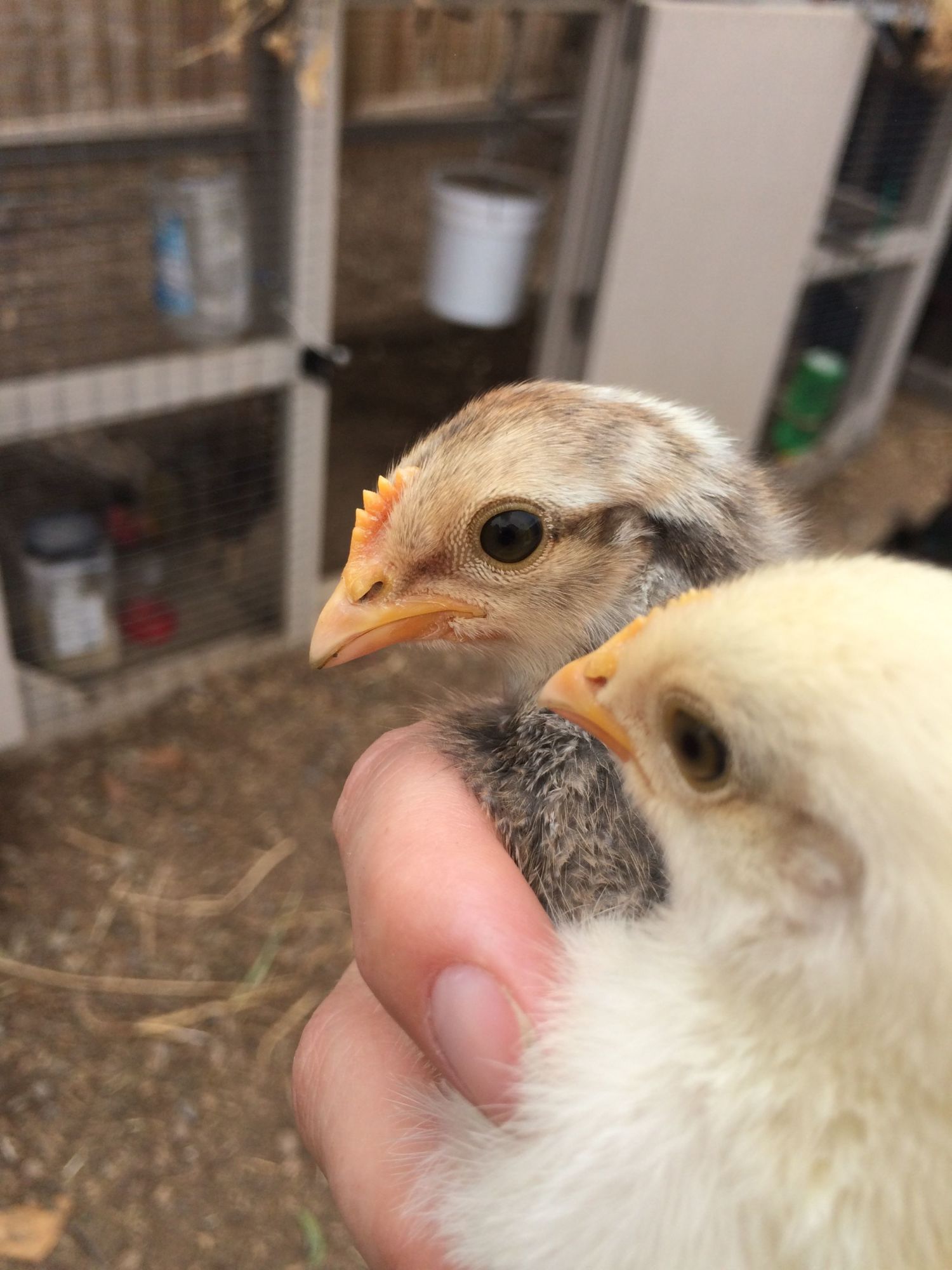 So I had a broody hen and ordered some eggs for her. What ended up hatching was 2 "SBEL" and 2 Crested Cream Legbars. So I assumed I'd get 2 auto-sexing chicks and 2 white w/ black specks.