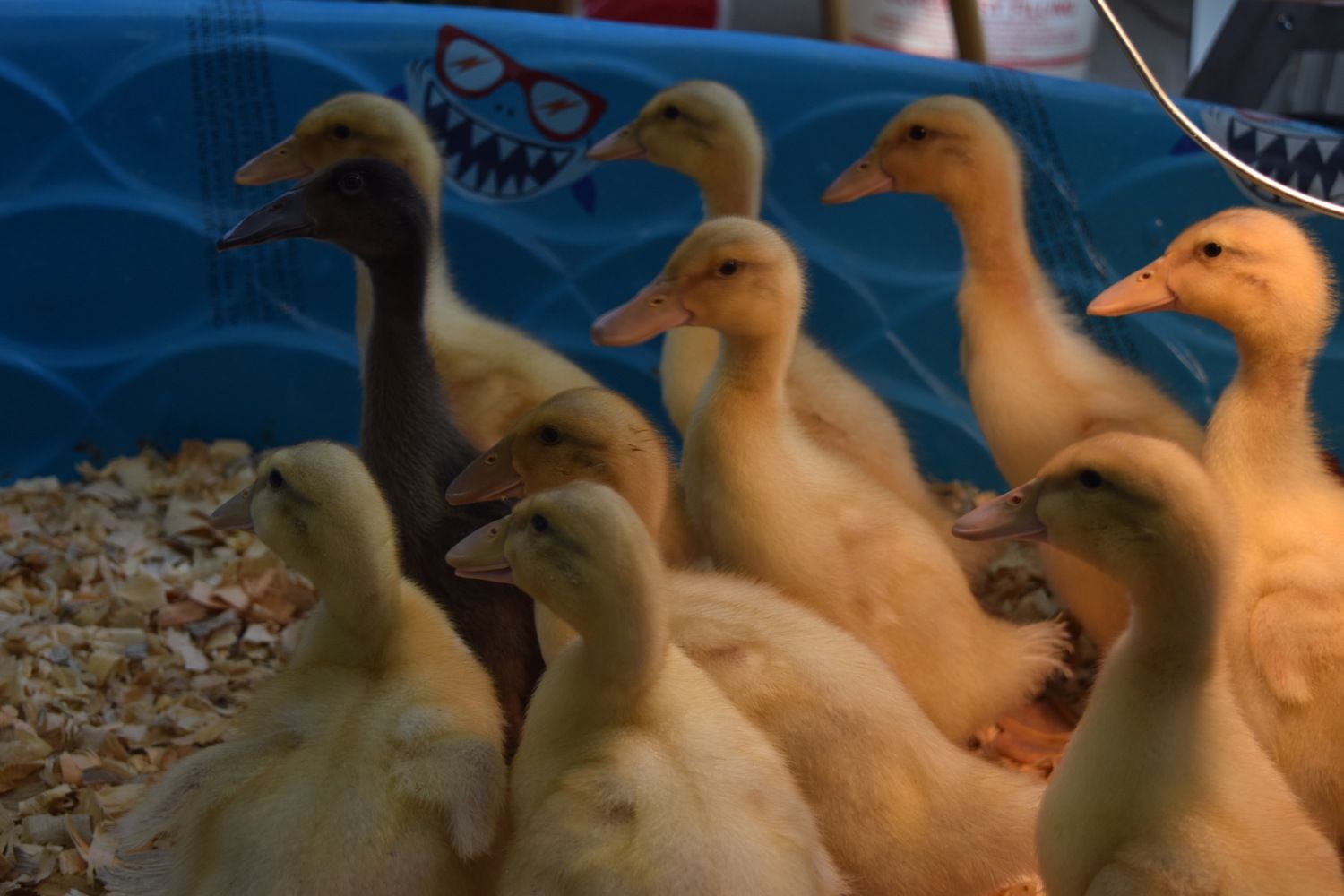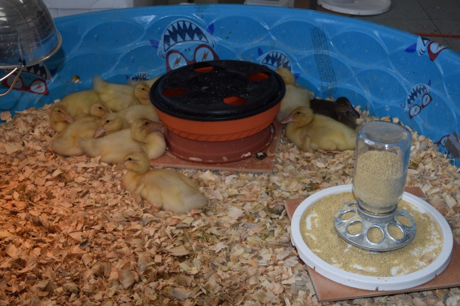Our Saxony ducklings are 2 weeks old and growing fast. For the time being we have outsmarted their messiness by putting shavings then a tile then an inverted pot saucer then a bucket top before placing a feeder or waterer proudly atop the stack. So messy and so worth all the effort. Ducklings make me happy:)!