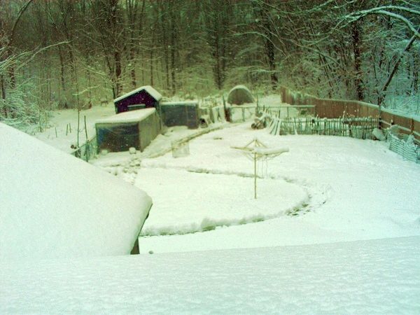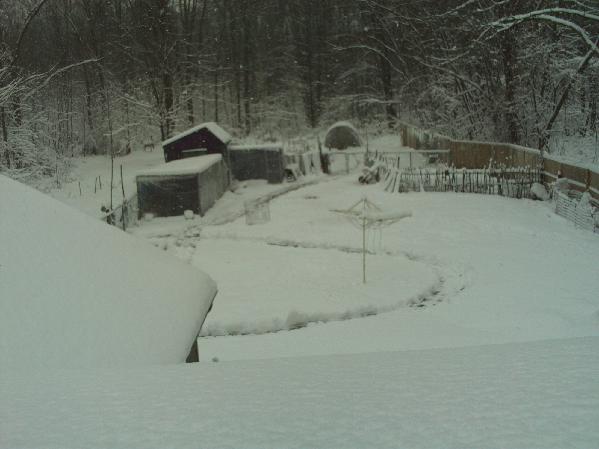 Anyhow this is the yard I must snow blow to get to the birds every day. I have to pull my wagon out there to bring fresh water. You can not see them but the big loop brings me past the two new half hoop coops being built for growing out chicks. The woods are very beautiful in the winter. Found out how to edit too. It looks like evening in this pic but it's really mid - morning.